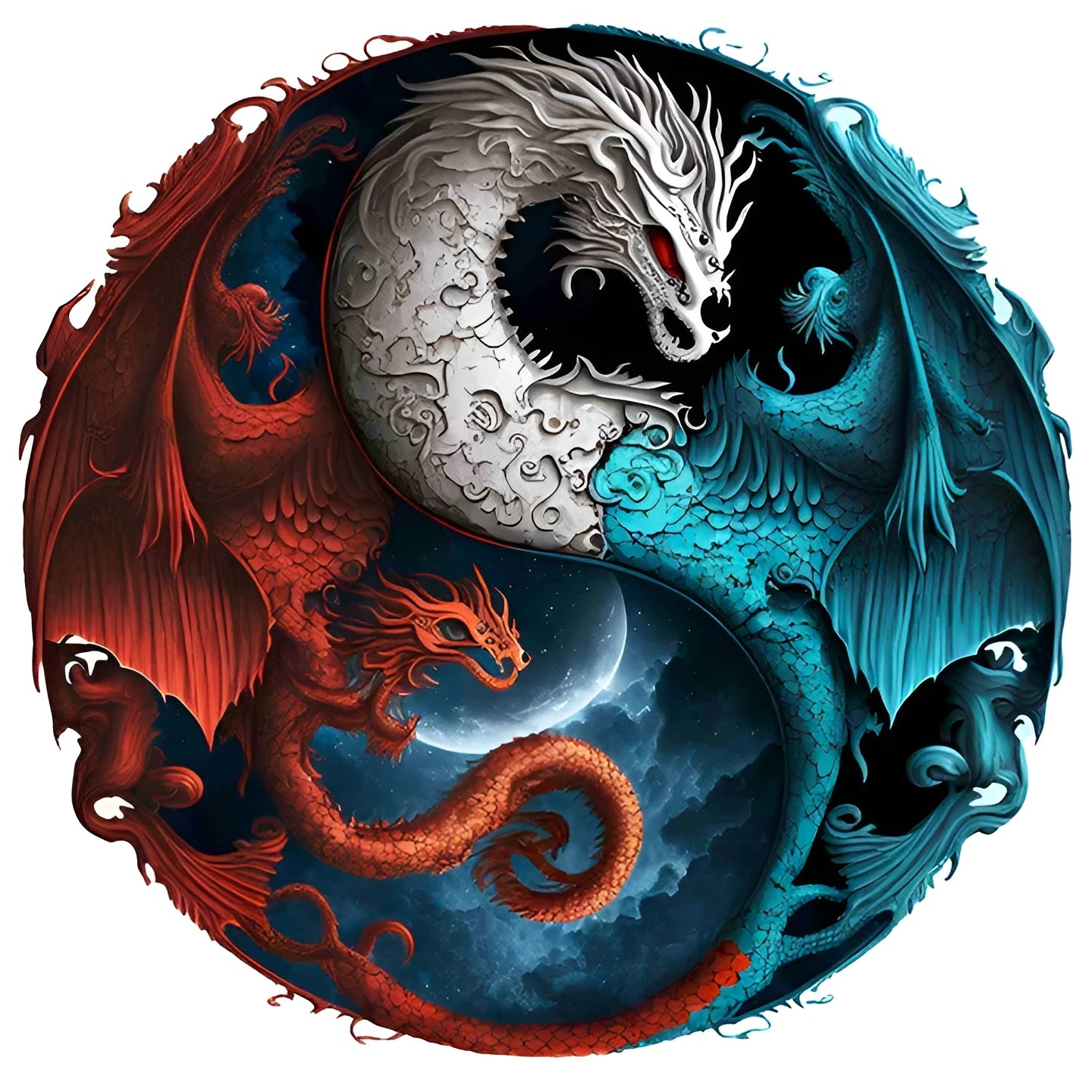 Wooden Jigsaw Puzzle Featuring Yin Yang Dragon Artwork
