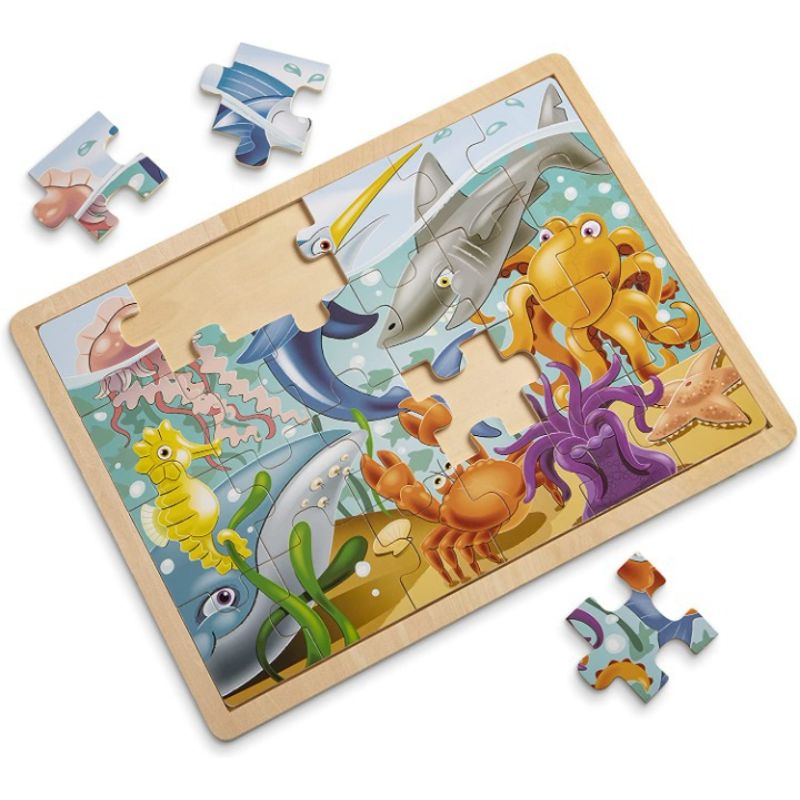 Ocean Animals Wooden Jigsaw Puzzle With Storage Tray