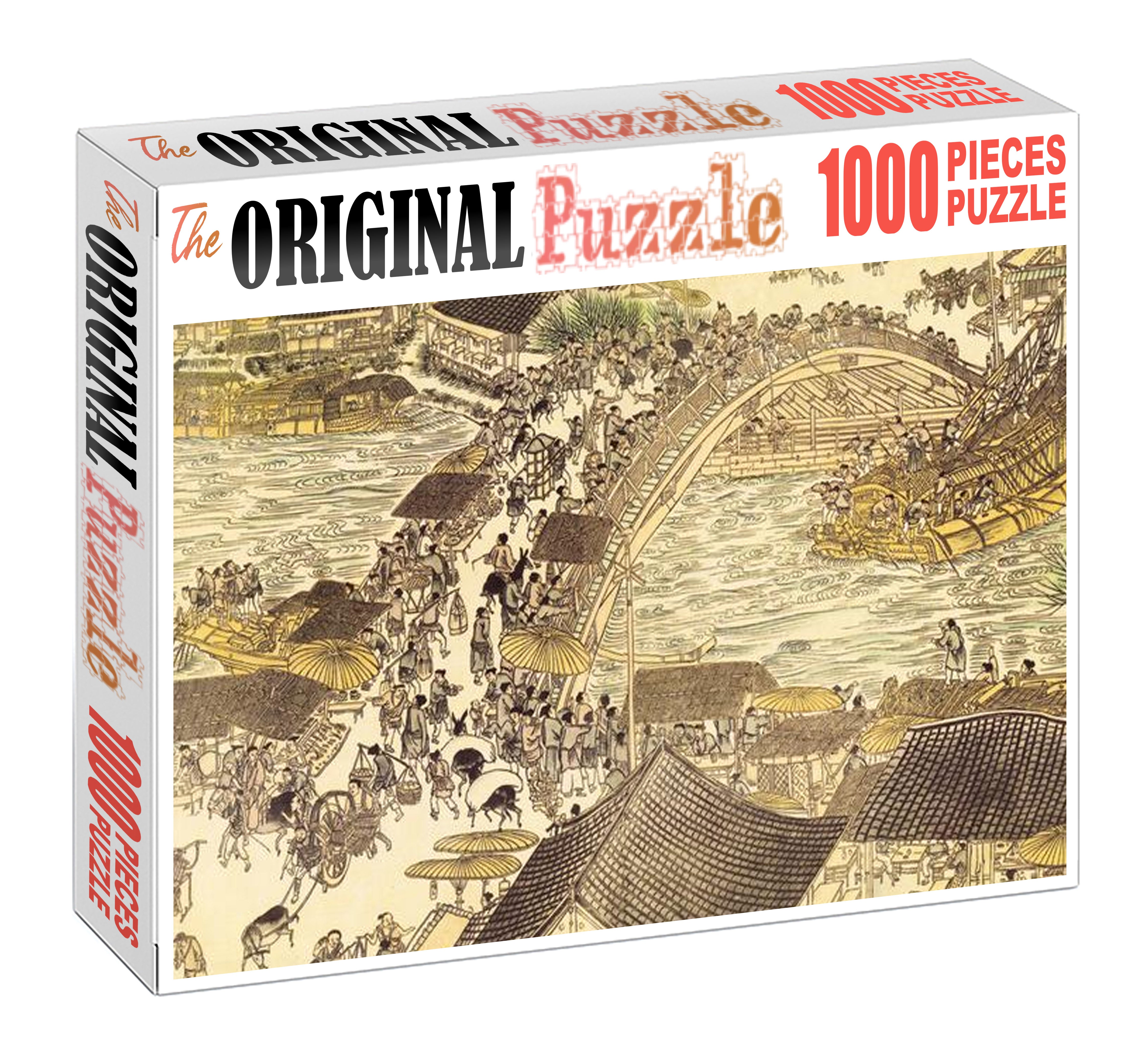 Old China City Pencil Drawing Wooden 1000 Piece Jigsaw Puzzle Toy For Adults and Kids
