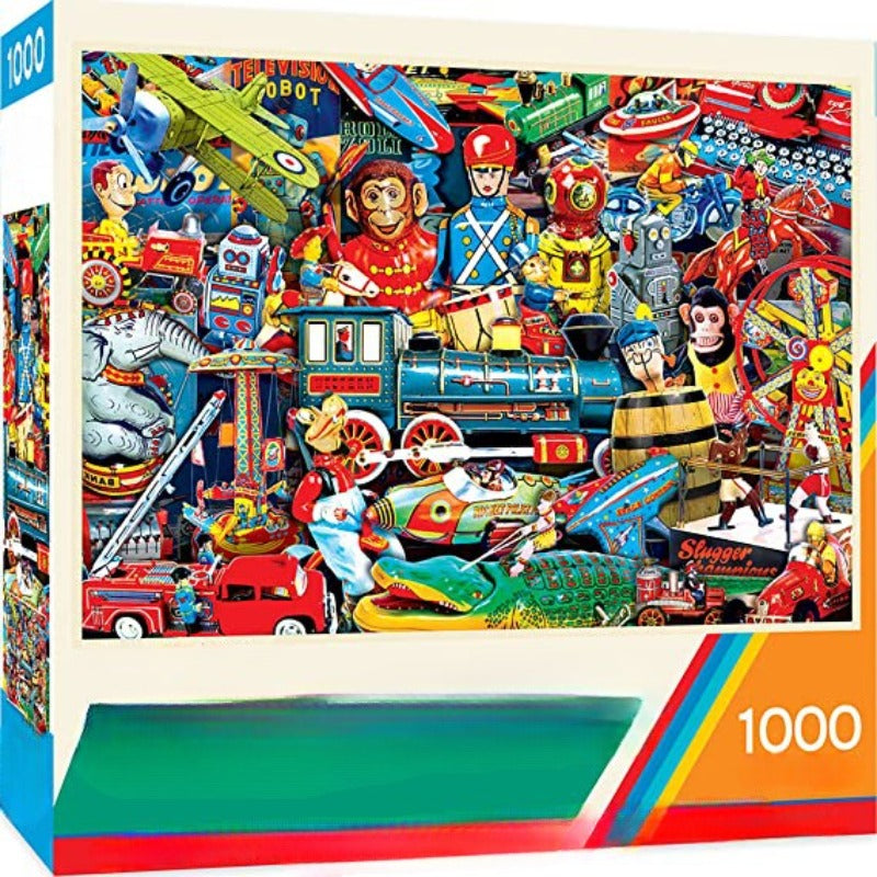 The 1000 Master Pieces Jigsaw Puzzle is a great addition to any baby's toy box since it is composed of sturdy materials that will last for many years. The 1000 jigsaw puzzle pieces are tiny enough to fit in even the tiniest hands. Its durable components and intermediate difficulty level will teach your child about self-learning.
