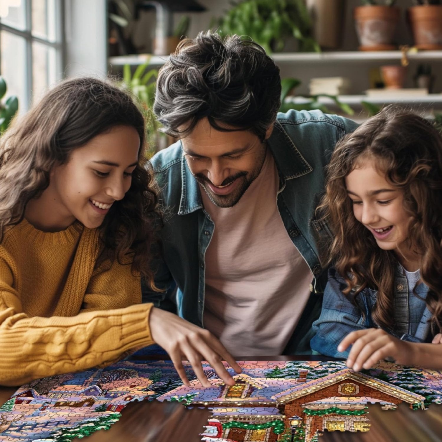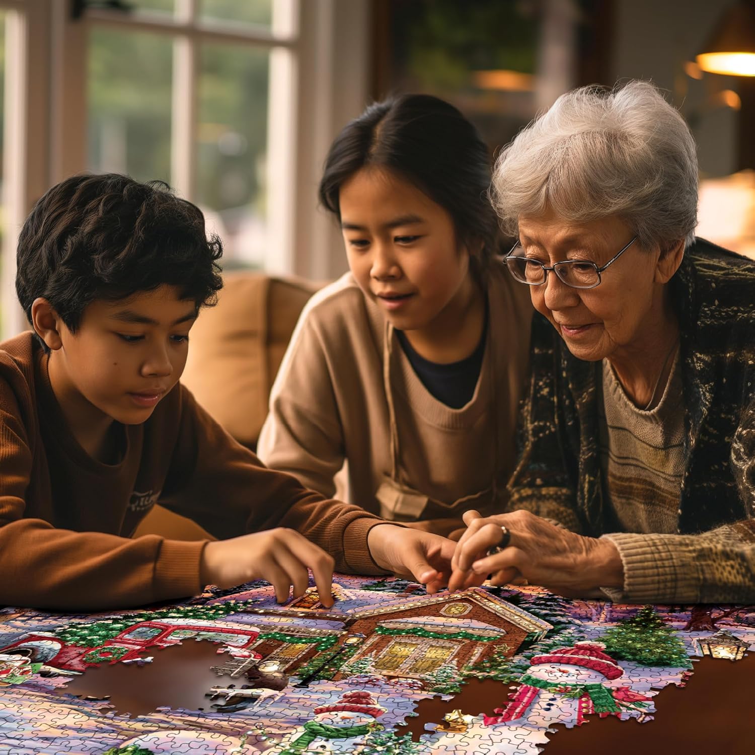 Step into holiday nostalgia with the 1000 Piece Vintage Winter Christmas Jigsaw Puzzle, featuring a charming red truck, cheerful snowmen, and a cozy holiday home. The precision-cut pieces ensure a seamless and enjoyable assembly, making it a great activity for the whole family. Measuring 24 x 30 inches when complete, this puzzle offers hours of festive fun and comes packaged in a beautiful box, making it a thoughtful holiday gift.