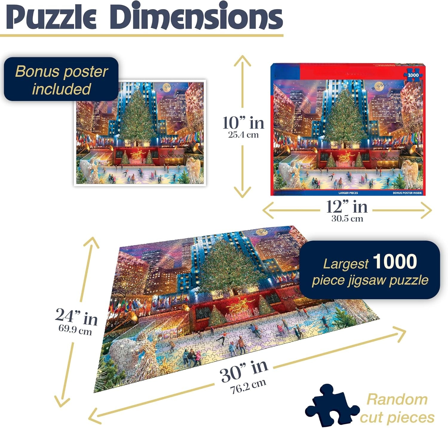 Celebrate the holiday season with the 1000 Pieces New York Christmas Puzzle, featuring a festive design that captures the magic of New York during Christmas. Crafted with thick, interlocking pieces made from recycled materials, this puzzle offers a satisfying and eco-friendly experience. A bonus poster is included to guide you during assembly, and the completed puzzle can be transformed into charming holiday decor for your home.