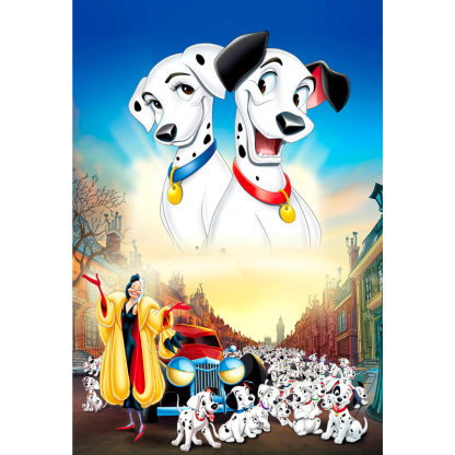 101 Dalmatians is a 1000 piece wooden jigsaw puzzle that illustrates the dogs from the favorite movie featuring the main dalmatian puppies.