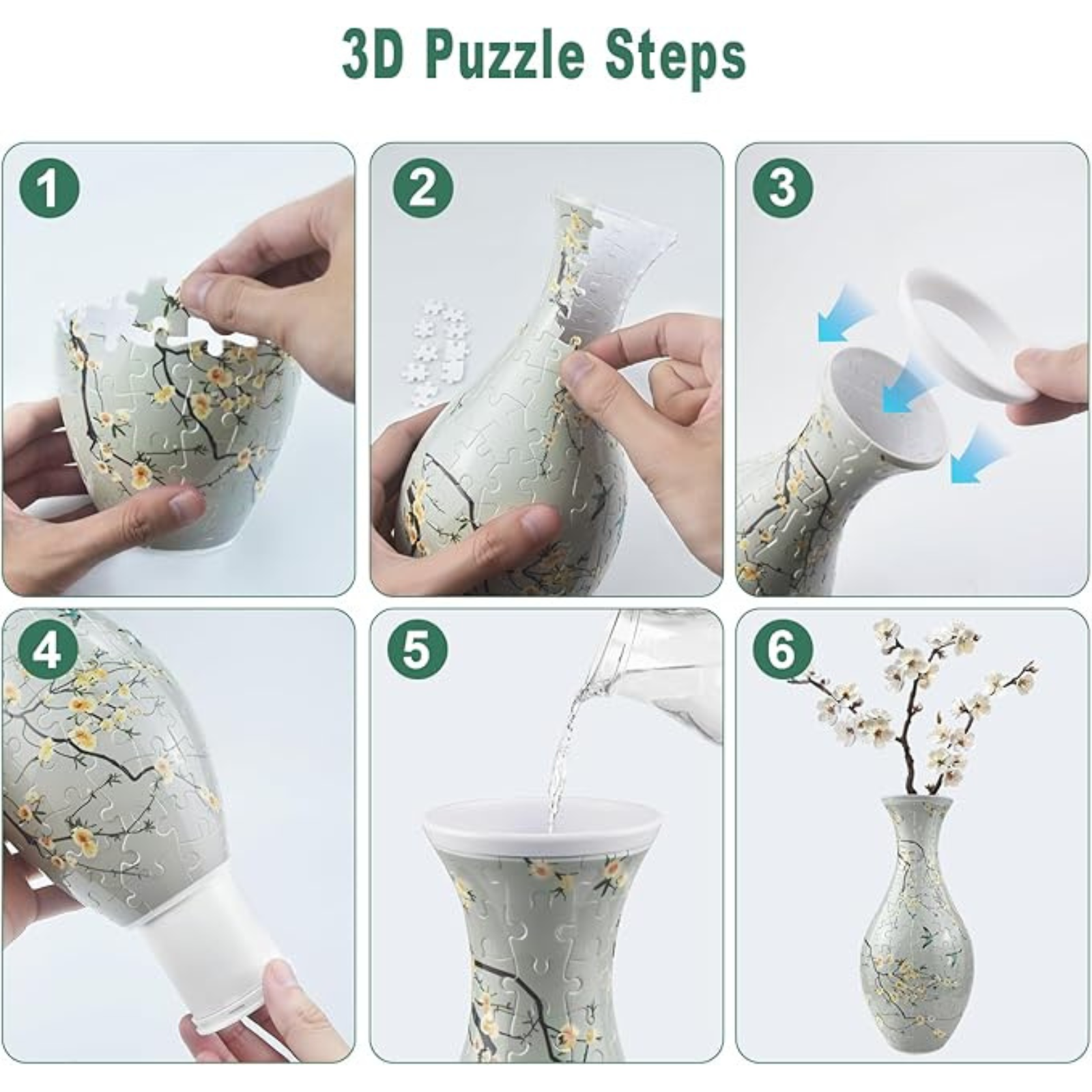 The 160 Piece DIY 3D Puzzle Flower Vase Decorative Craft Display offers a creative craft activity that transforms a traditional puzzle into a decorative vase. Instead of forming a flat image, curved puzzle pieces interlock to create a three dimensional structure. Each piece connects carefully with the next, gradually building the vase shape during the assembly process.