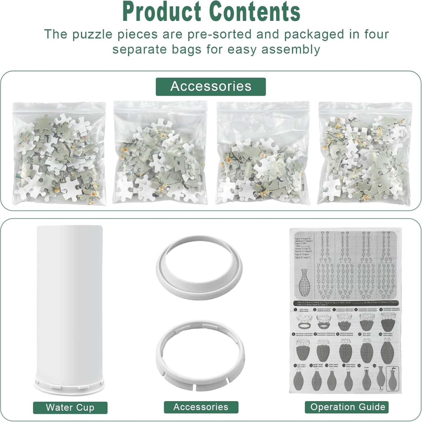 This DIY 3D puzzle vase combines creative puzzle building with decorative use. The curved puzzle pieces form a distinctive vase structure that differs from traditional puzzles. The printed floral artwork adds visual interest, making the finished vase suitable for many interior décor styles.