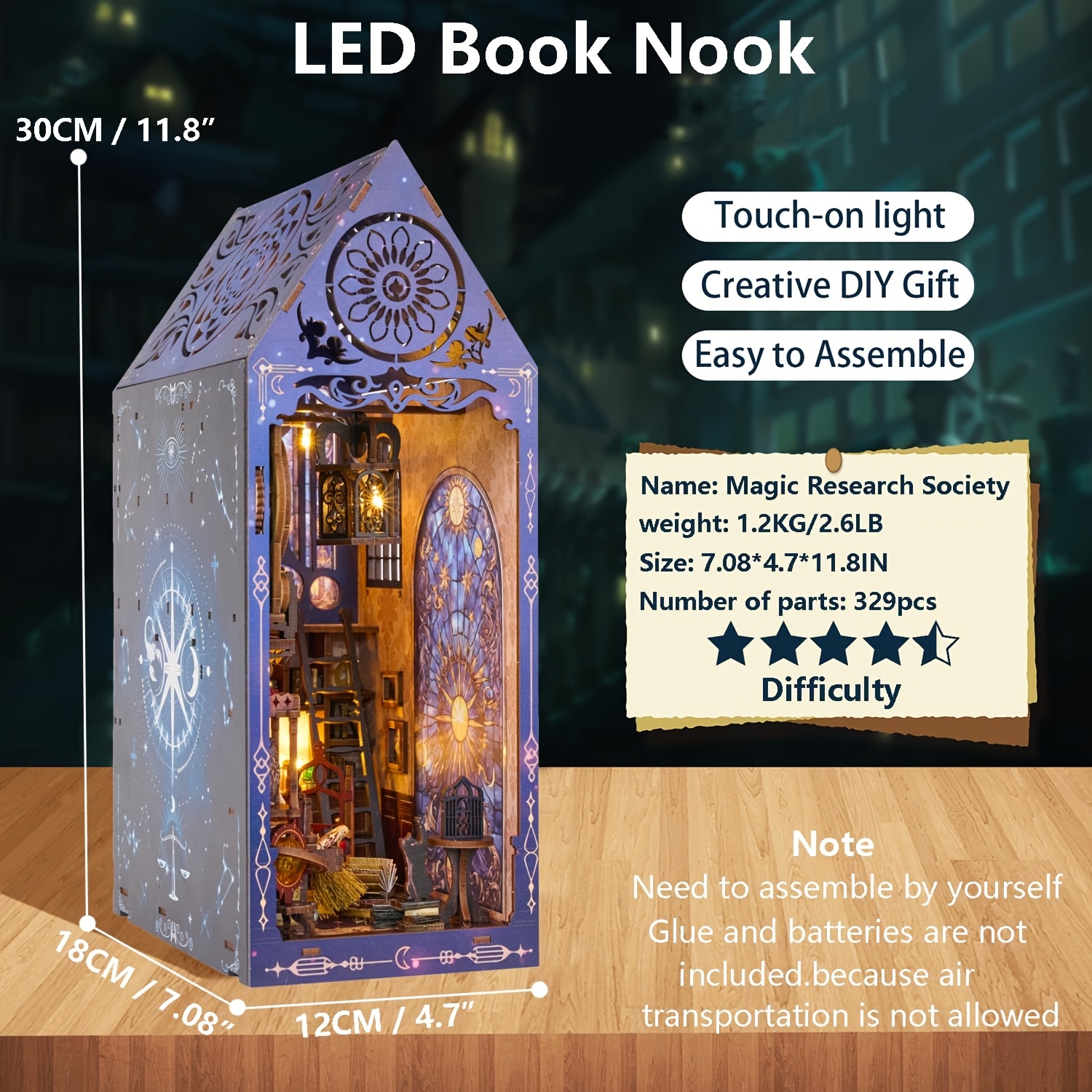 - Warm LED lighting enhances the mysterious magical atmosphere