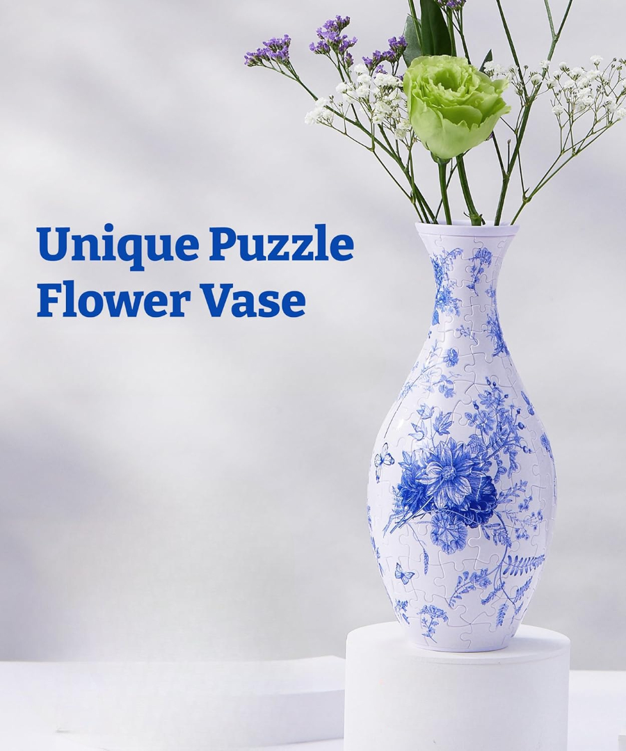 The 3D Puzzle Vase With 160 Curved Pieces And Stand is a distinctive blend of art and activity. With its interlocking design, detachable water cup, and elegant floral pattern, it serves as both a creative project and a functional home accent. Ideal for gifting or personal display, this puzzle vase adds character and originality to any space.