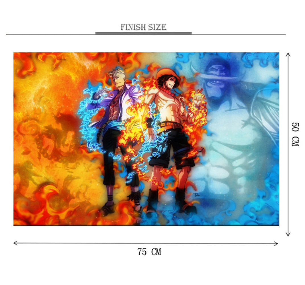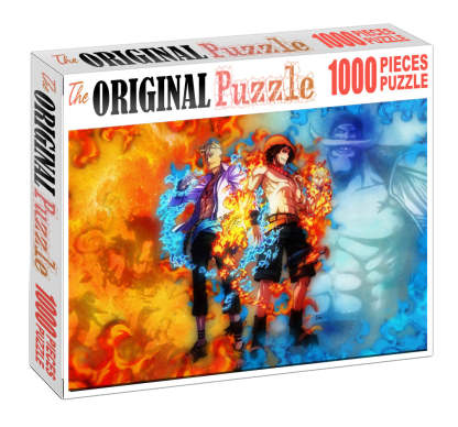Ace and Pheonix is a 1000 piece wooden jigsaw puzzle that illustrates anime characters that represent fire and water.