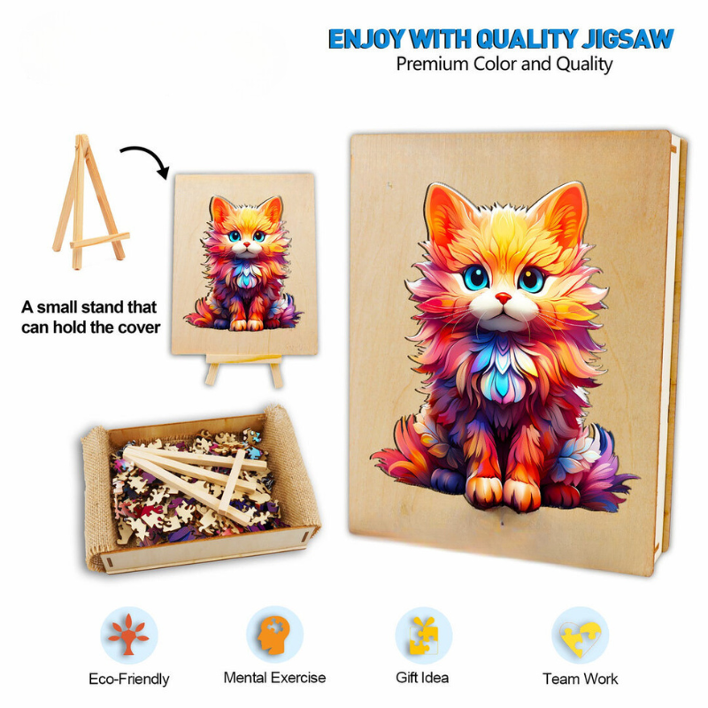 Bring joy and cognitive development into your home with our Adorable Cat Wooden Jigsaw Puzzle. Whether as a gift or a personal pastime, this puzzle promises hours of entertainment and a sense of accomplishment upon completion.