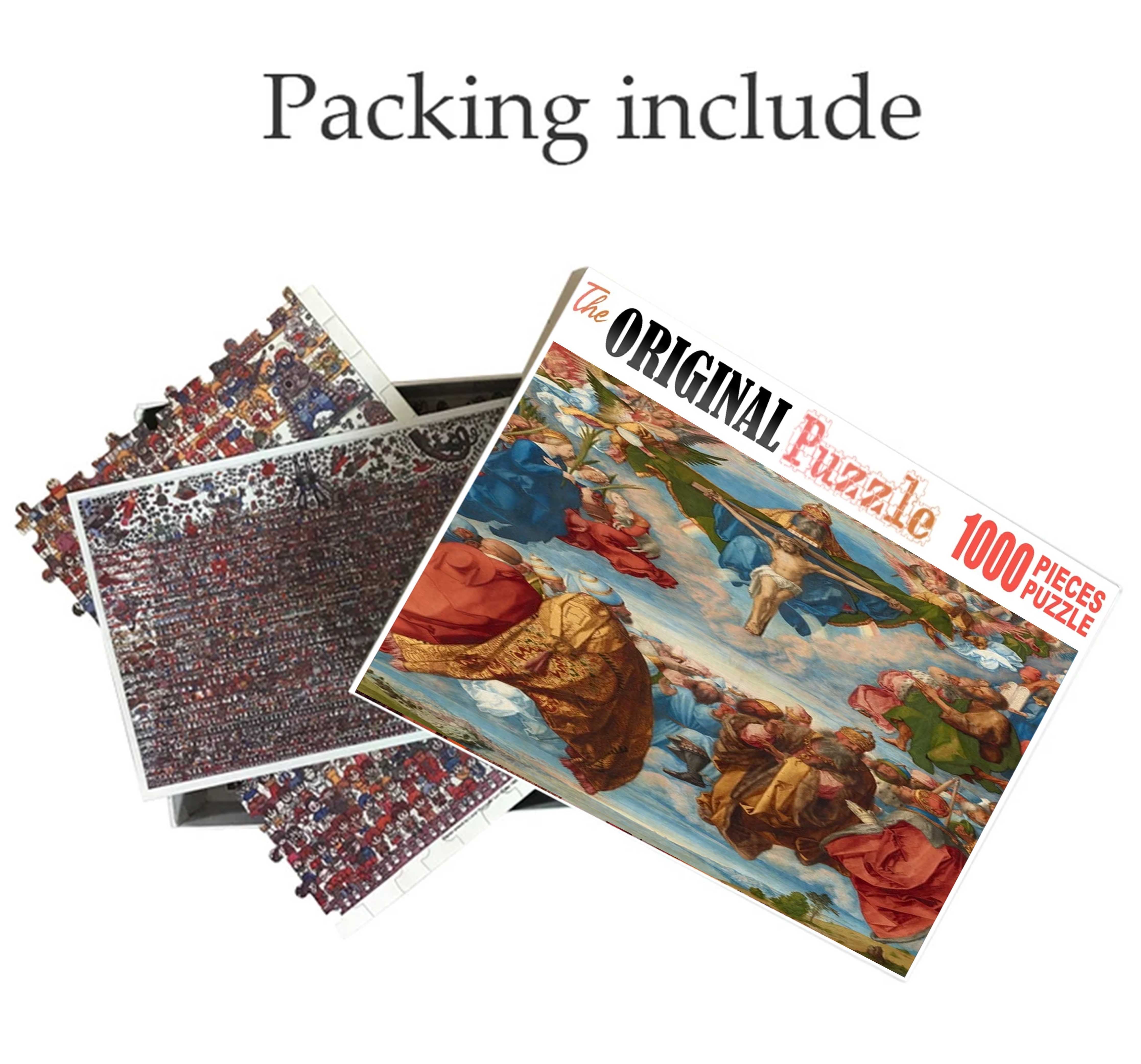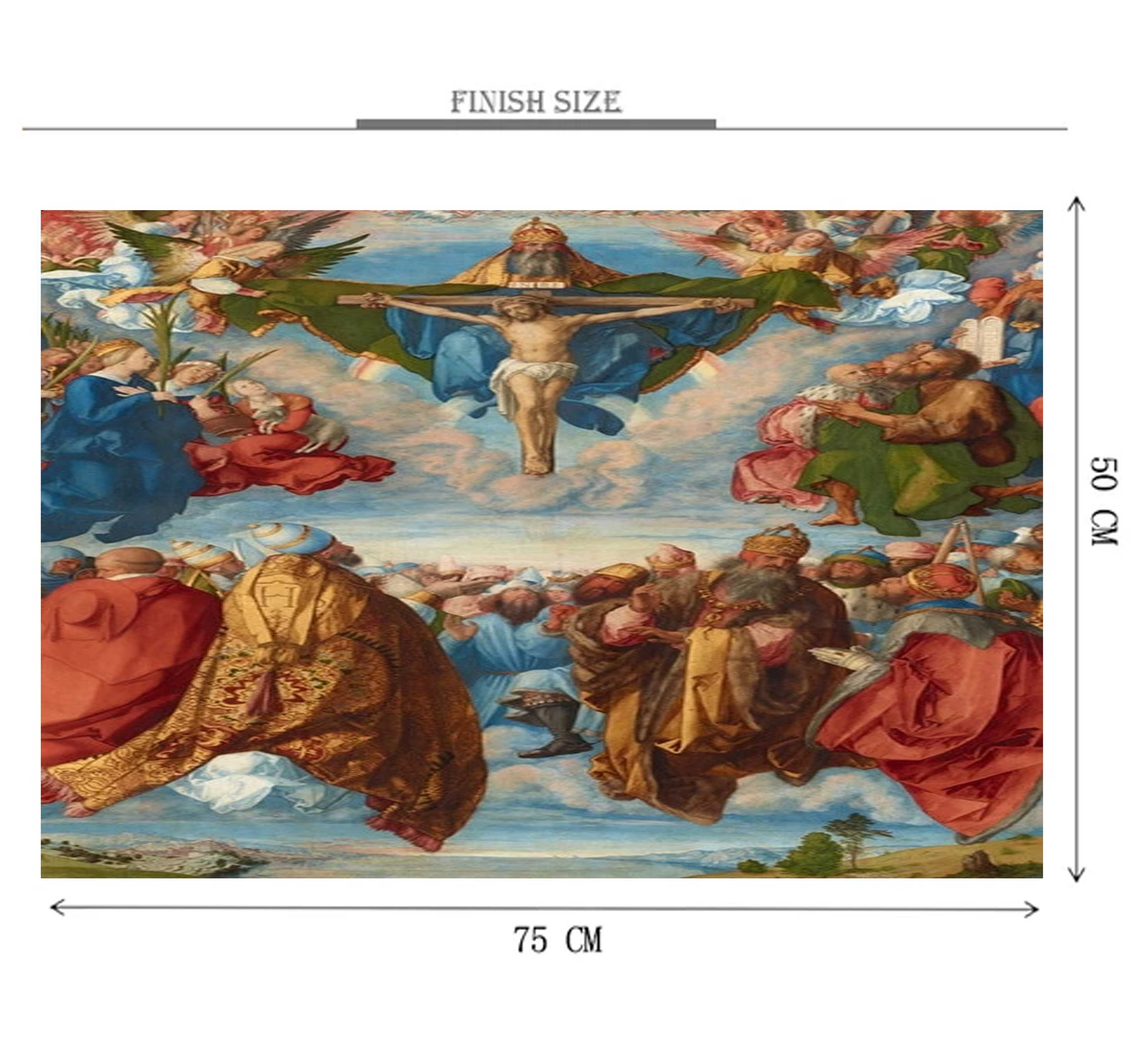 Adoration of The Trinity is a 1000 piece wooden jigsaw puzzle that honors the Adoration of the Trinity is an oil-on-panel painting by German Renaissance artist.