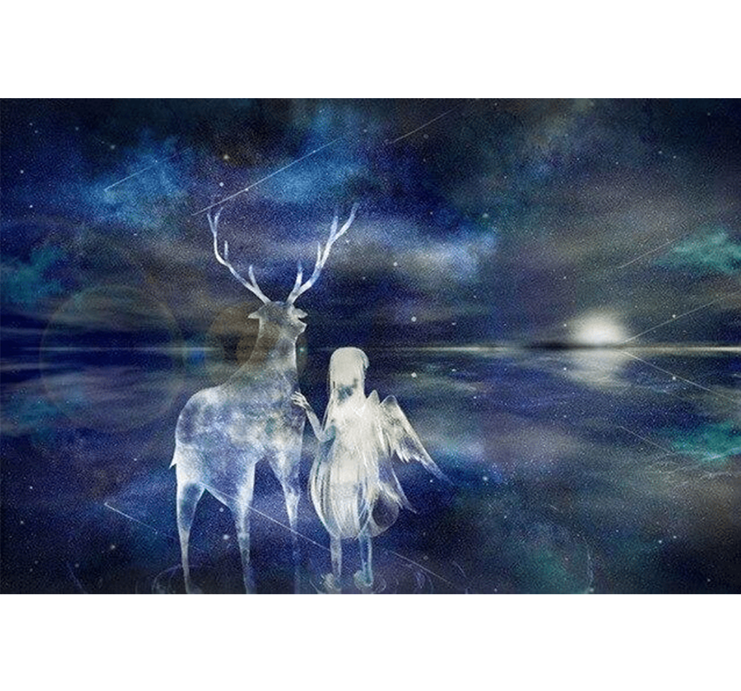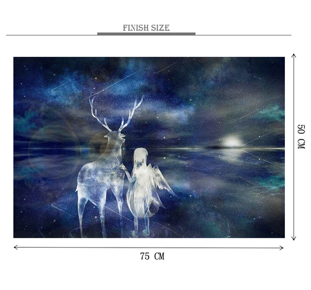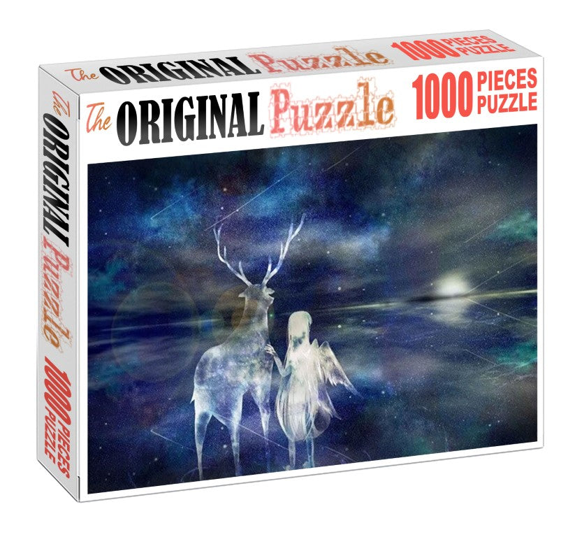 Angel Raindeer is a 1000 piece wooden jigsaw puzzle designed by artist Francis Deroa shows a scenery with a girl and her reindeer. It portrays the love between humans and animals.