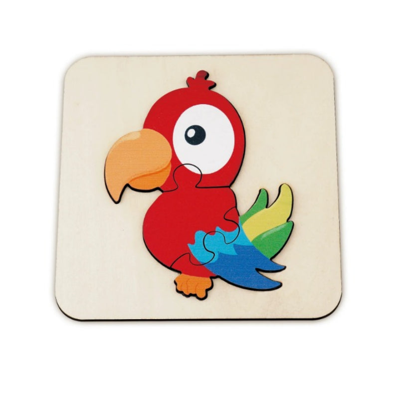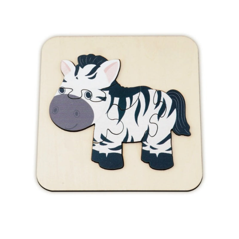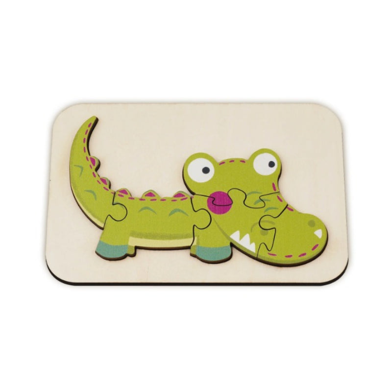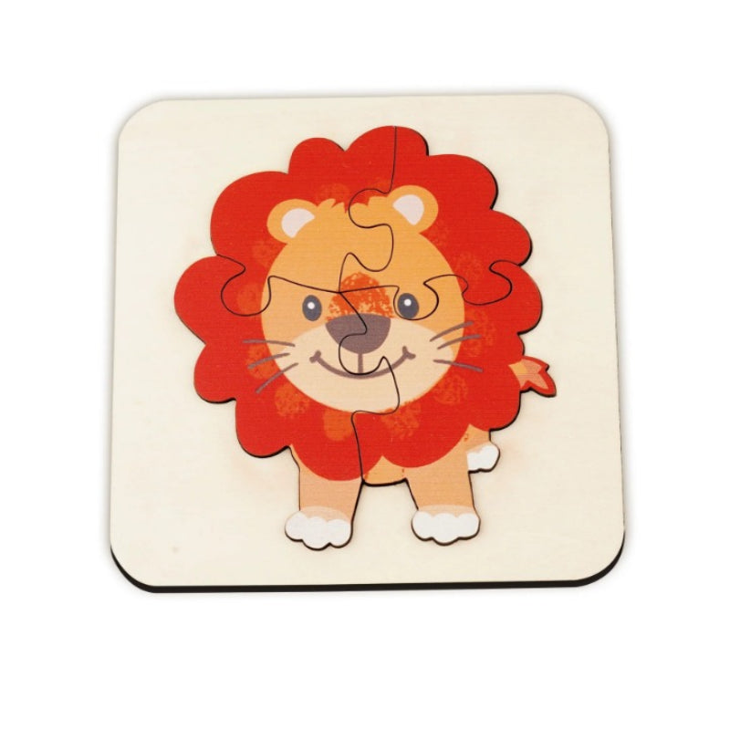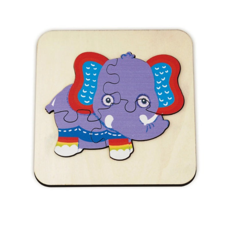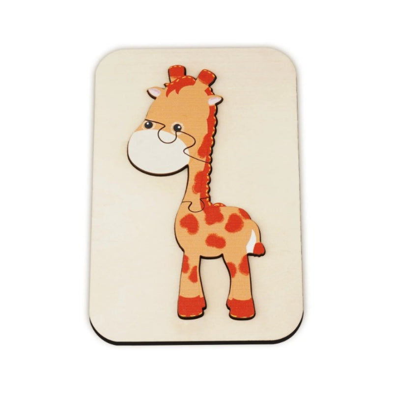 Introduce your little one to the animal kingdom with this charming Animals Art Puzzle. Designed for toddlers, this puzzle features bright colors and bold patterns. With a few simple pieces that fit neatly into a wooden tray, it's an excellent educational toy for children just starting to learn about shapes and fitting pieces together!