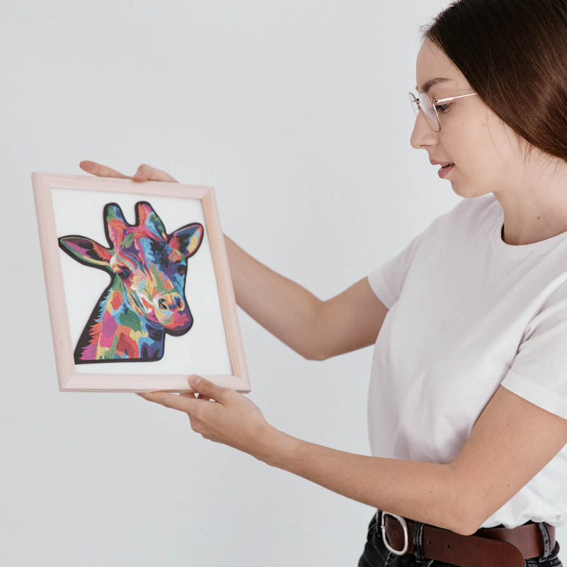 Experience the wonder and diversity of nature through the lens of a true wildlife expert. With vibrant colors and intricate patterns, the Artistic Giraffe Wooden Puzzle is a captivating tool for all ages to explore and discover the fascinating world of wildlife.