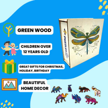 The Dragonfly Wooden Jigsaw Puzzle is more than just a pastime; it’s a celebration of nature’s artistry and a testament to high-quality craftsmanship. Whether you’re solving it alone or with loved ones, this puzzle offers hours of engagement and satisfaction. Its vibrant design and intricate details also make it an excellent gift for puzzle enthusiasts or a beautiful addition to your decor collection