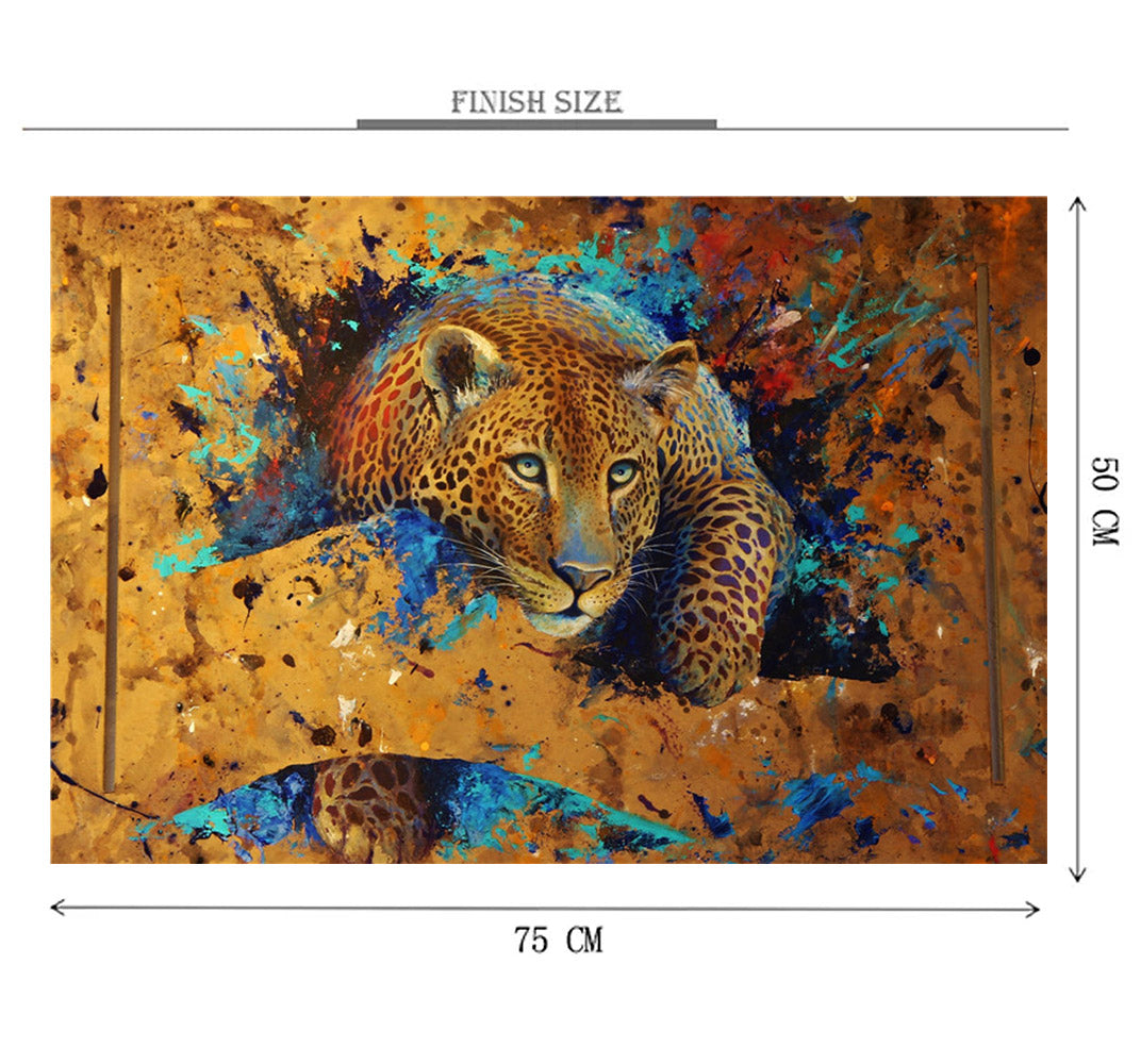 Asian Leopard is a 1000 piece wooden jigsaw puzzle designed by artist Francis Deroa of a cute emotionless leopard.