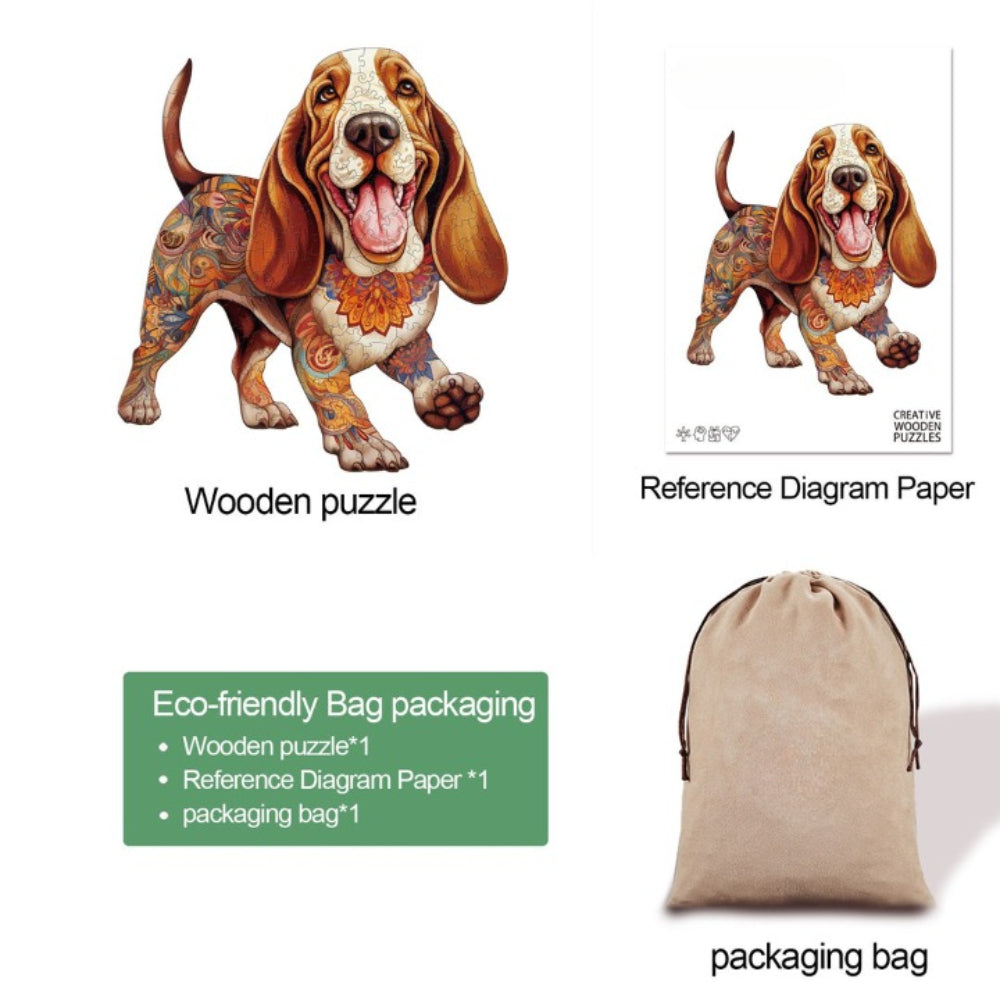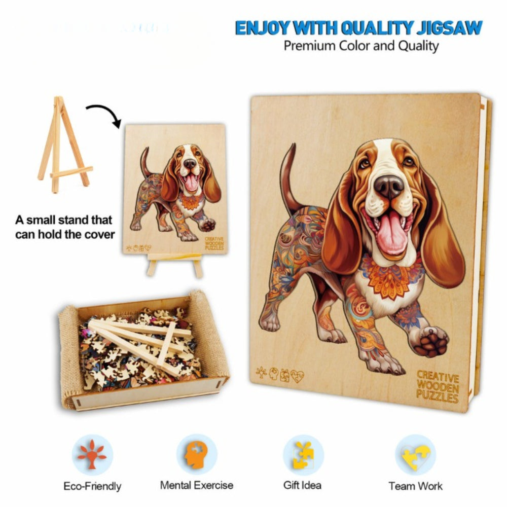 The Basset Hound Wooden Jigsaw Puzzle is not just a pastime; it's a work of art that brings a smile to your face with each piece placed.