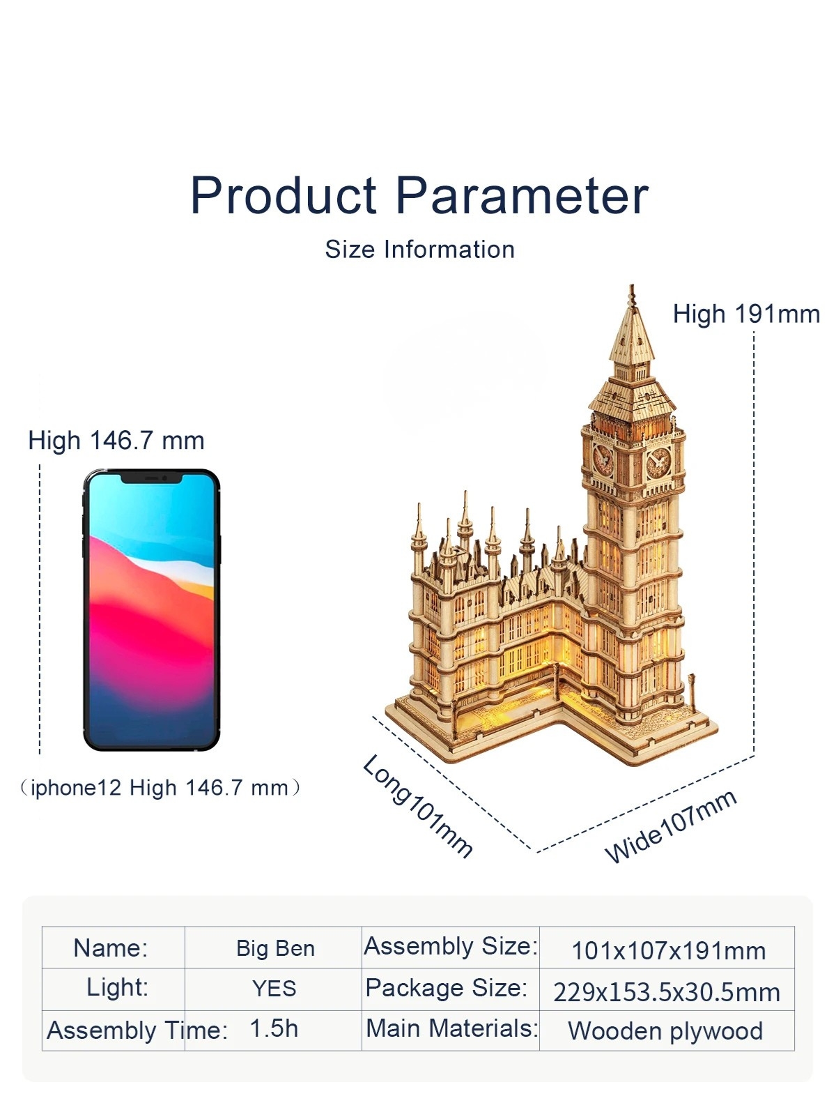 Specifications of Big Ben Wooden 3D Puzzle Model Kit