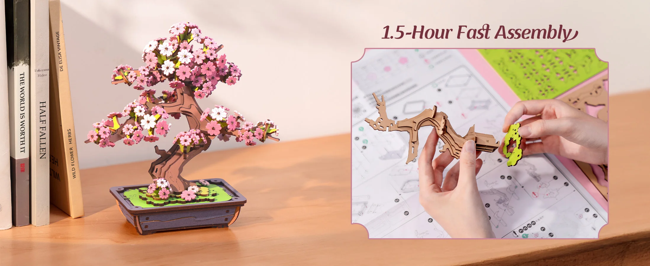 The Sakura Bonsai Puzzle Kit has been thoughtfully designed to combine creativity, precision, and craftsmanship. Every element reflects attention to detail, from the delicate petals to the tree’s balanced wooden framework.