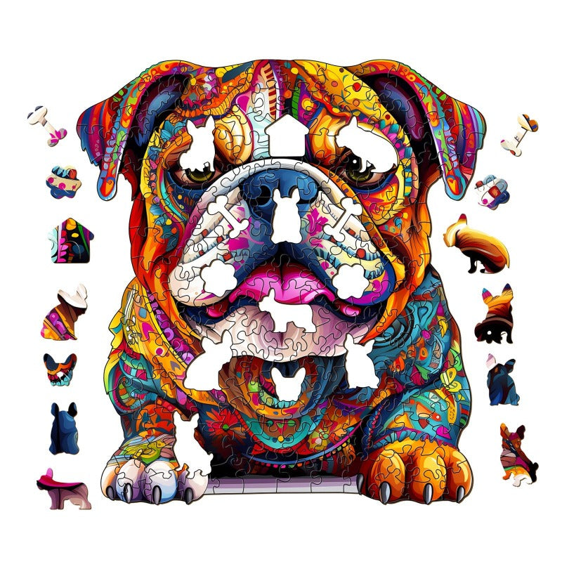 Our Bulldog Wooden Jigsaw Puzzle is more than just a puzzle; it's a work of art that challenges and engages the mind. Whether you're a seasoned puzzler or introducing someone to the joy of solving puzzles, this product promises hours of fun and a sense of accomplishment when the final piece falls into place.