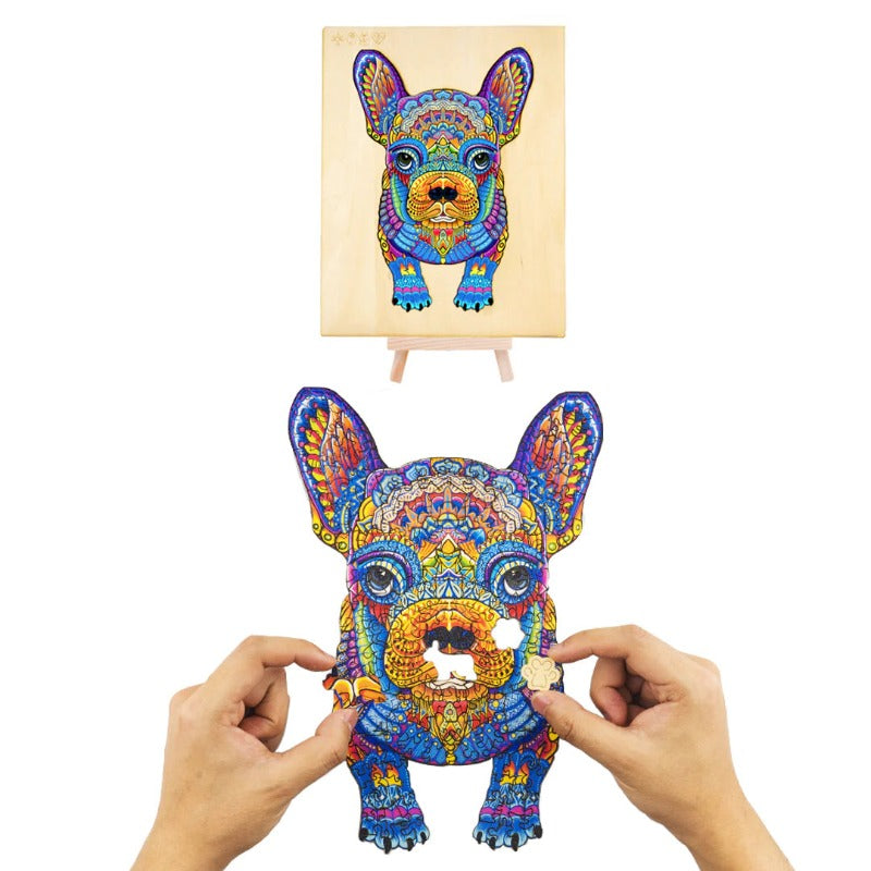 A Work of Art and Bulldog Love: The "Bulldog Wooden Jigsaw Puzzle" is not just a puzzle; it's a tribute to the Bulldog's unwavering spirit. Once completed, it transforms into a charming piece of art that captures the essence of this breed.