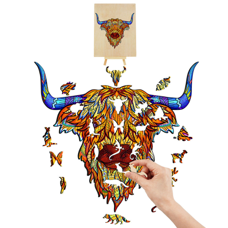 Indulge in the joy of our Cattle Wooden Jigsaw Puzzle, a thoughtful and exceptional gift perfect for individuals of all ages. Crafted from high-quality 3mm cork and HDF wood, this puzzle boasts precise laser-cutting and UF printing for intricate detailing. The flawless fitting mechanism ensures secure connections between pieces, preventing breakage or fading, and providing a durable puzzle that stands the test of time.