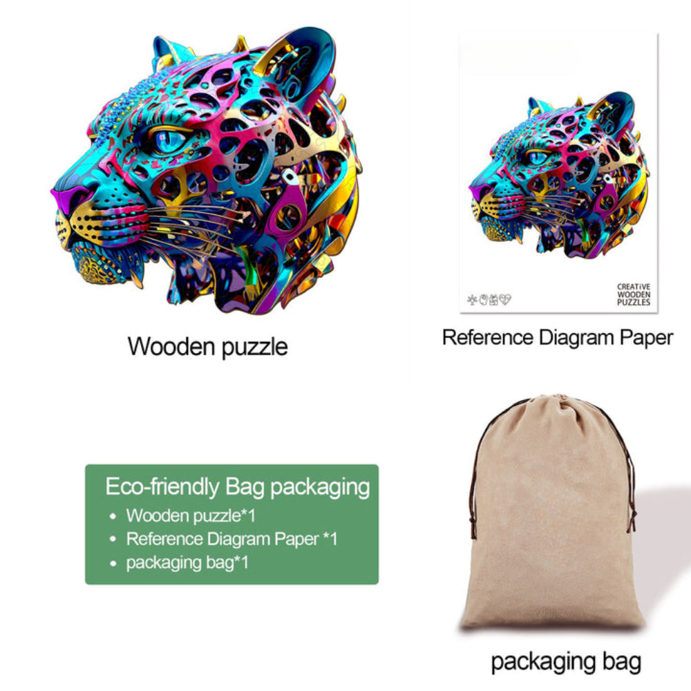 Dive into a world of abstract beauty with the Cheetah Wooden Jigsaw Puzzle. This striking piece artfully blends the swift grace of the cheetah with a colorful array of colors and shapes, creating a visual experience that's as dynamic as the animal itself. Each puzzle piece is a part of the cheetah's essence, coming together to form a vibrant celebration of one of nature's fastest creatures.