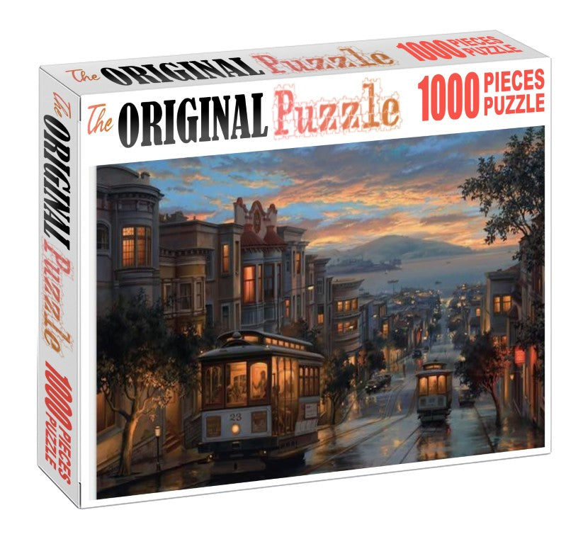 City Train Tour is a 1000 piece wooden jigsaw puzzle designed by artist Francis Deroa. The painting represents the imaginative idea of a dreamy castle in the clouds. This is a futuristic piece designed for little scientists in your house or older kids with a flair for space and fiction. The 1000-piece jigsaws offer an enjoyable challenge to all puzzle enthusiasts