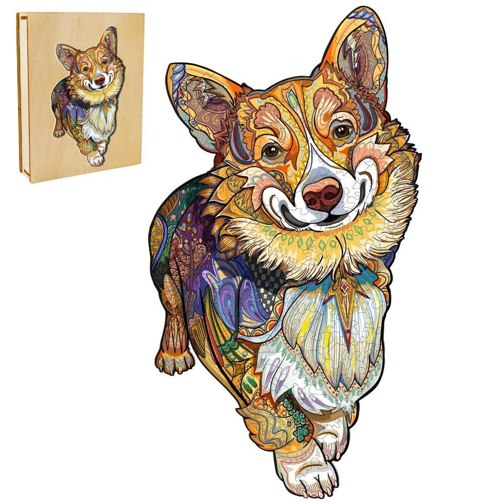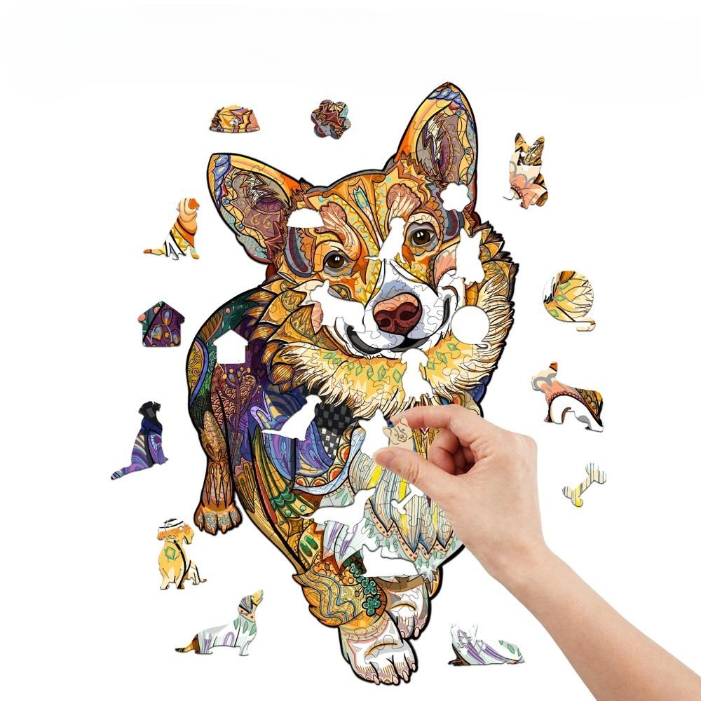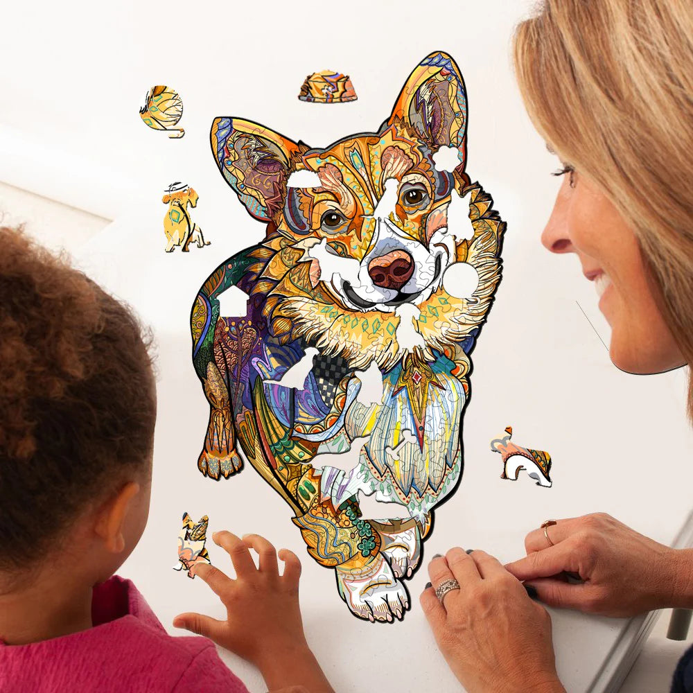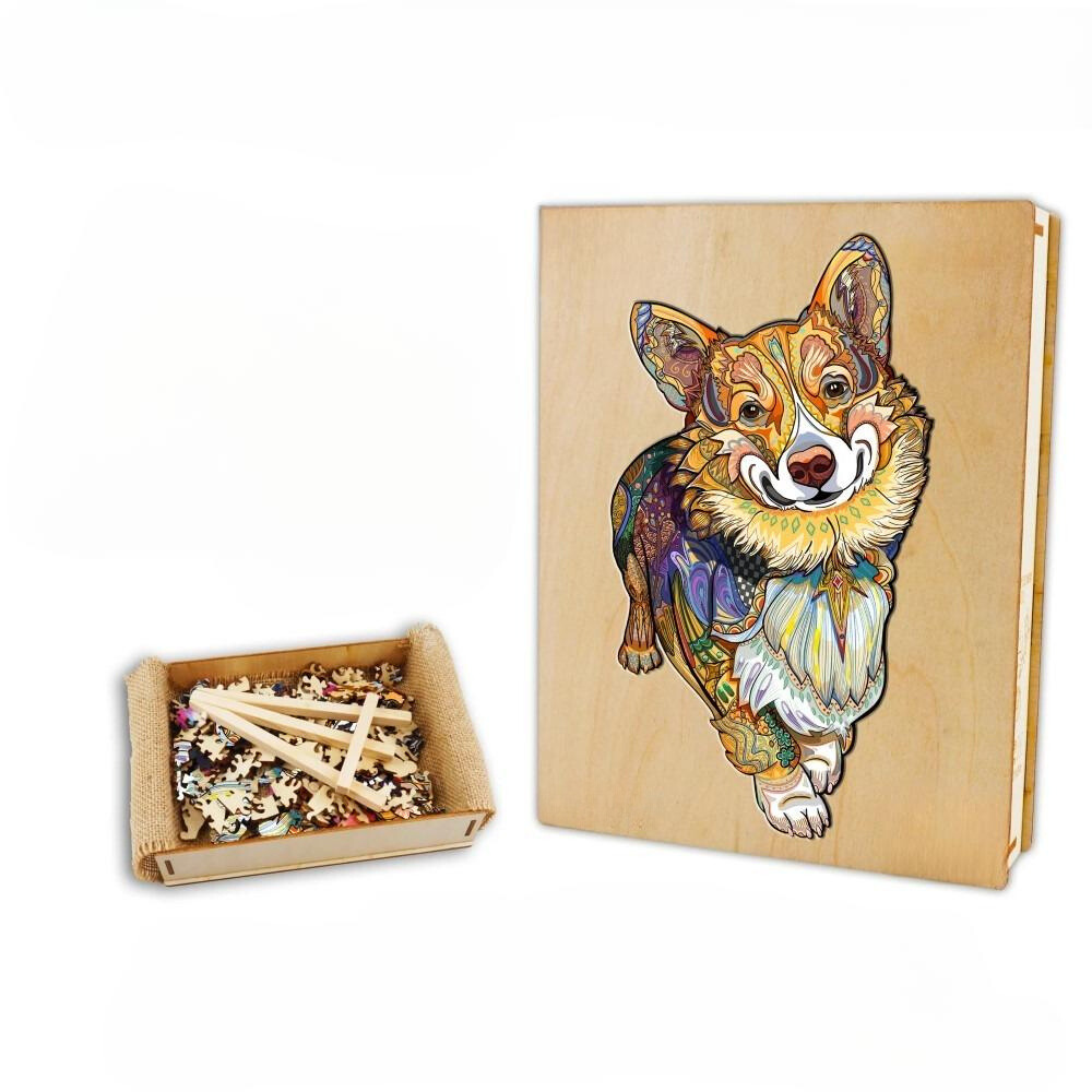 Assemble a masterpiece of color and canine charm with the Clever Corgi Wooden Jigsaw Puzzle, a challenge for puzzle and dog enthusiasts.