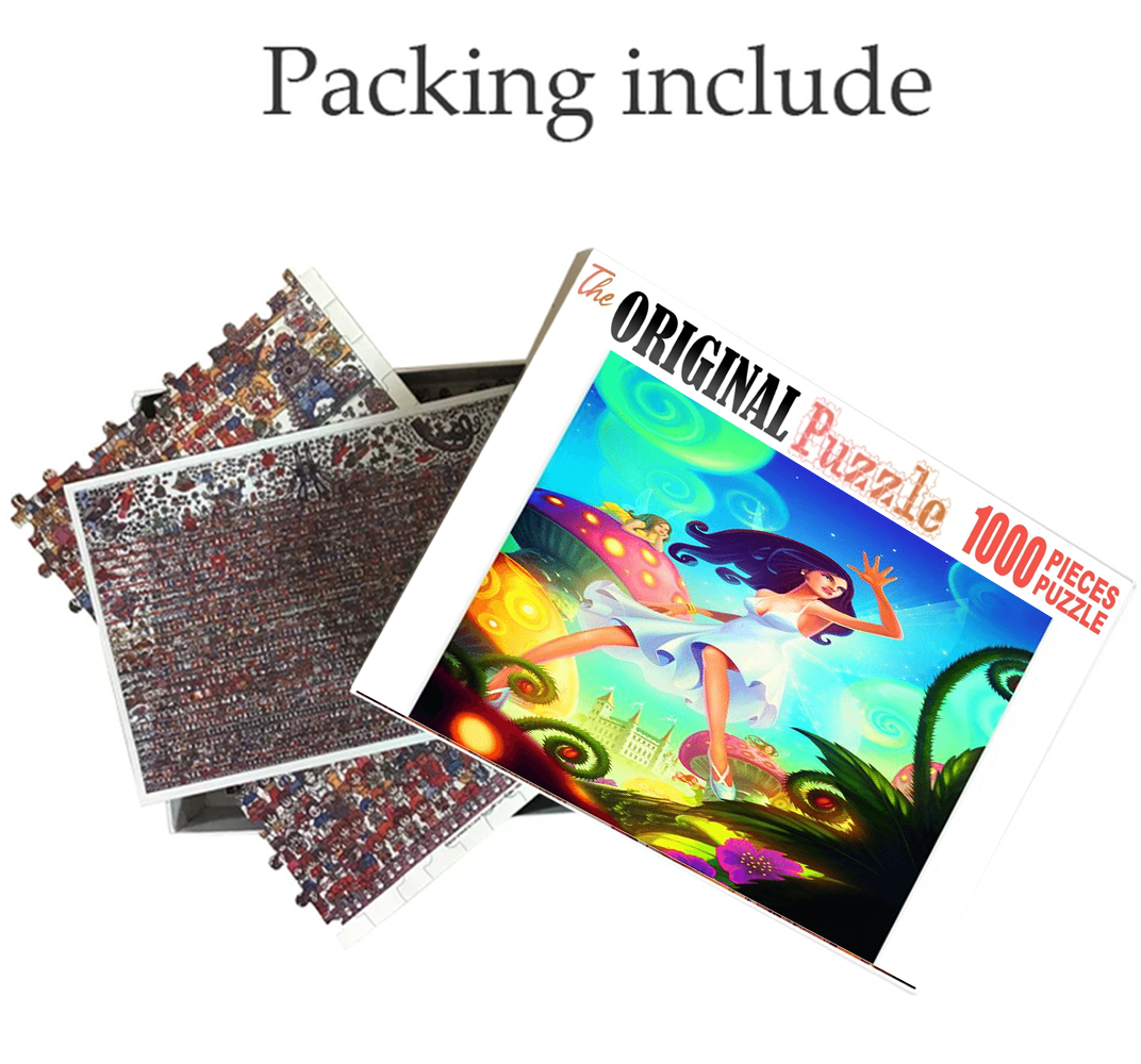 Comic Girl Artwork is a 1000 piece wooden jigsaw puzzle designed by artist Francis Deroa. The painting represents the imaginative idea of a dreamy castle in the clouds. This is a futuristic piece designed for little scientists in your house or older kids with a flair for space and fiction. The 1000-piece jigsaws offer an enjoyable challenge to all puzzle enthusiasts