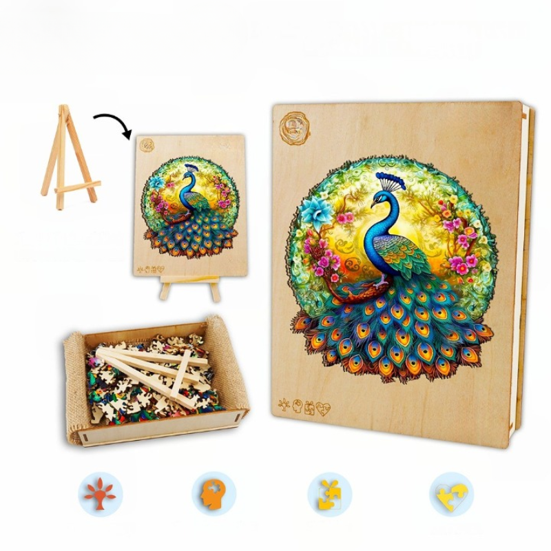 Introducing the Uncharted Peacock Wooden Jigsaw Puzzle, a captivating and brain-boosting entertainment option for all ages. Crafted with precision and designed to impress, this puzzle offers: