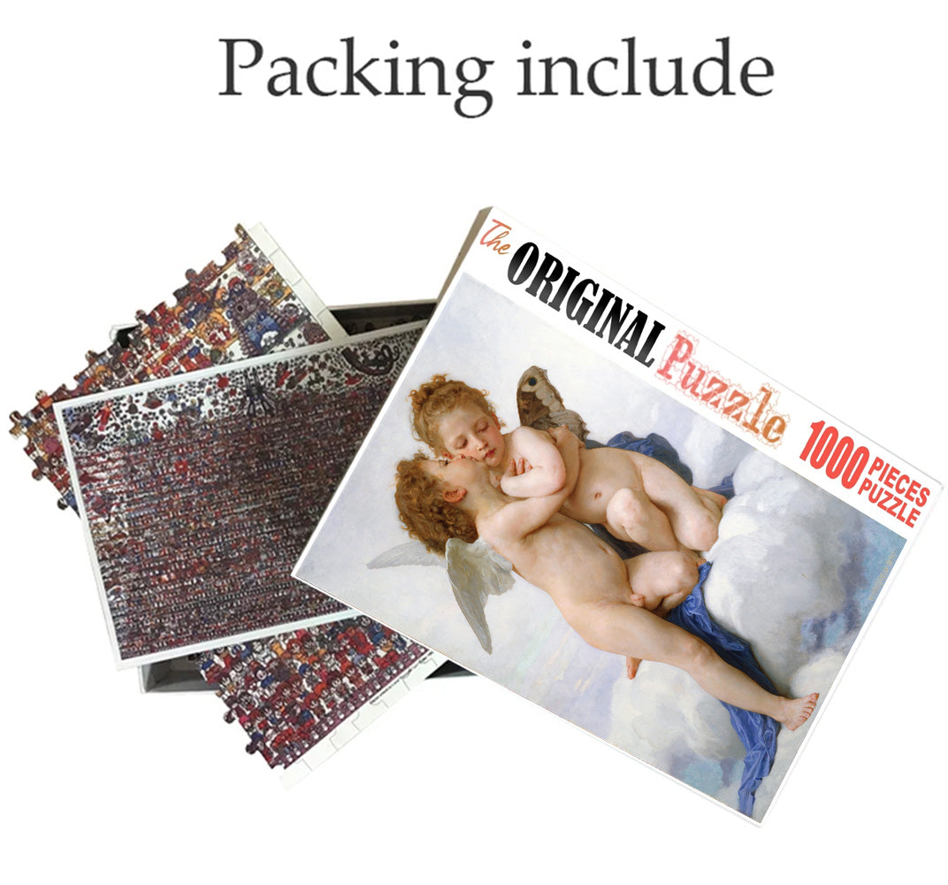 Cupids is a 1000 piece wooden jigsaw puzzle designed by artist Francis Deroa. The painting represents the imaginative idea of a dreamy castle in the clouds. This is a futuristic piece designed for little scientists in your house or older kids with a flair for space and fiction. The 1000-piece jigsaws offer an enjoyable challenge to all puzzle enthusiasts