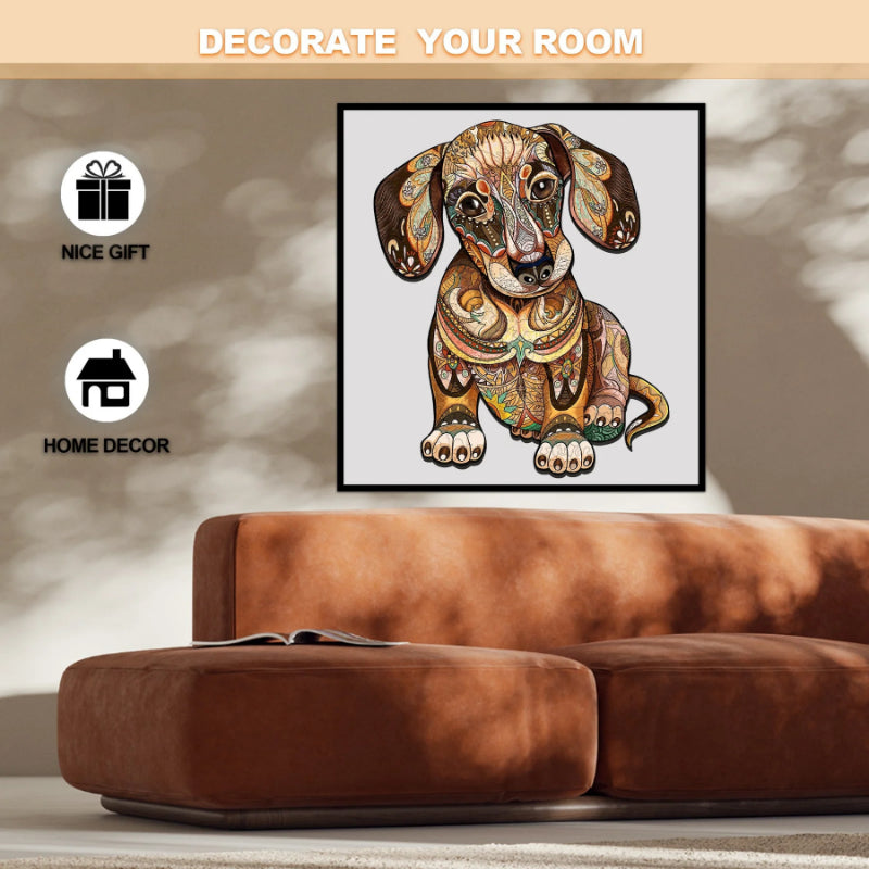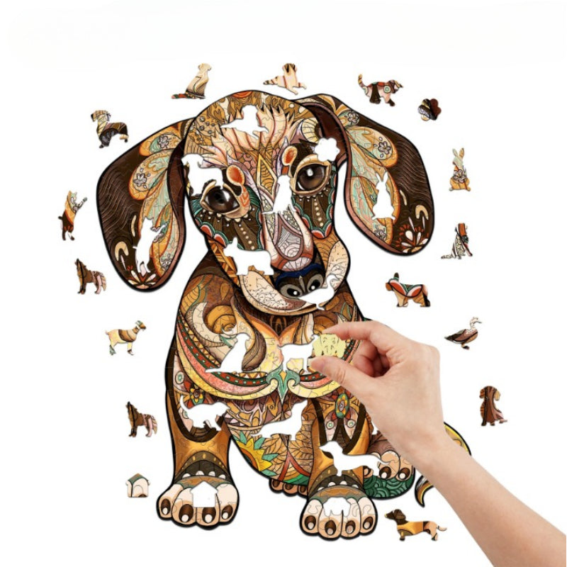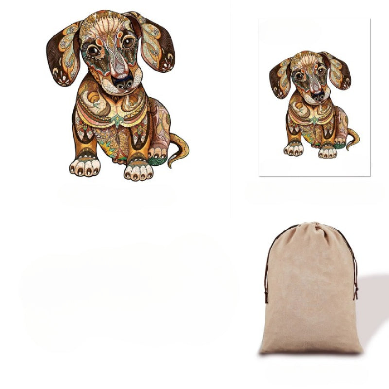 The Dachshund Wooden Puzzle Art is a heartwarming tribute to this affectionate and spirited breed. The puzzle features a whimsical illustration of a Dachshund. The puzzle includes a variety of special shapes, like little dogs and bones, to delight and challenge the assembler. This engaging puzzle is perfect for dog enthusiasts!