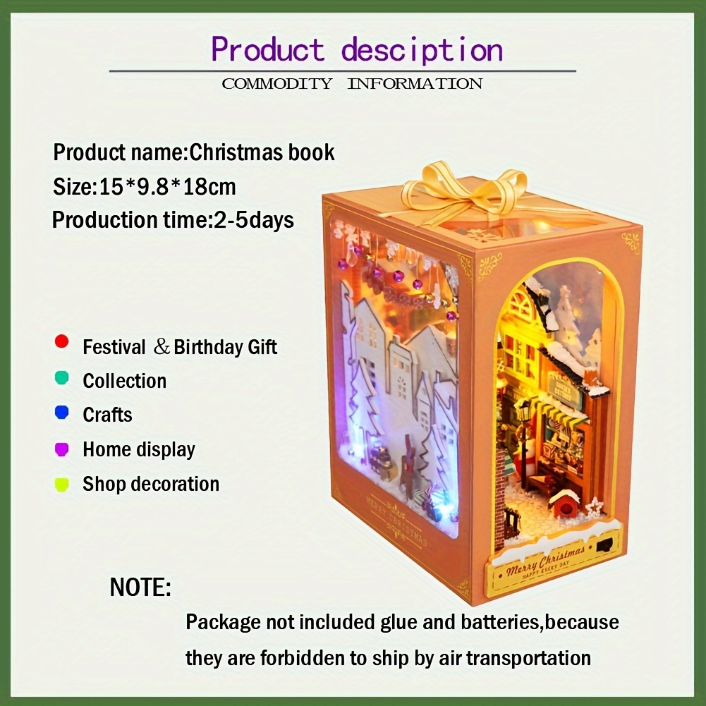 - Keep the DIY Christmas Village Themed Box Miniature Display Kit in a dry environment