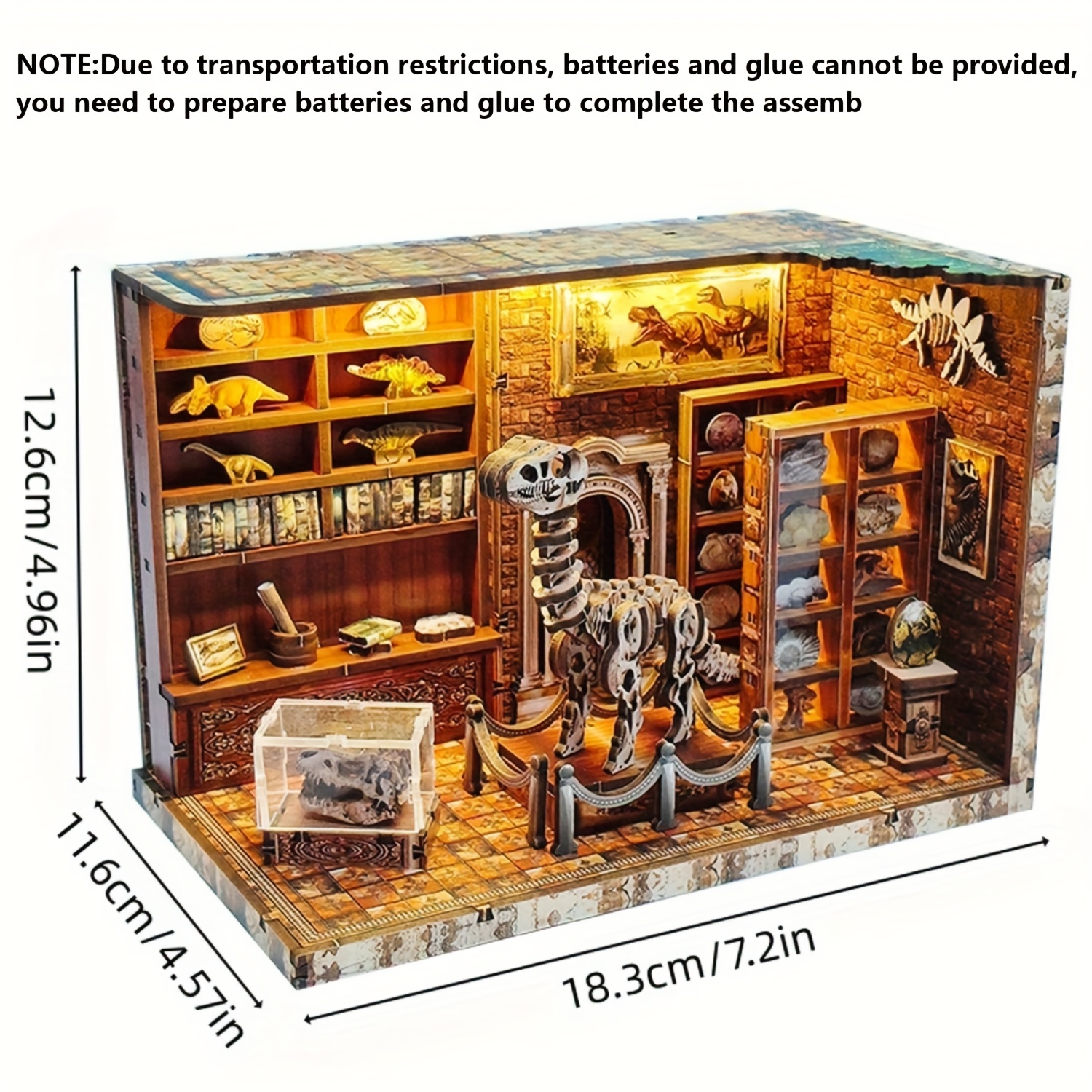 Once completed, the model becomes a compact decorative bookshelf insert illuminated by interior lighting. With its detailed layout and structured design, the Dinosaur Museum Library Book Nook adds visual depth and character to bookshelf arrangements, reading spaces, and indoor display areas while offering an engaging crafting activity.