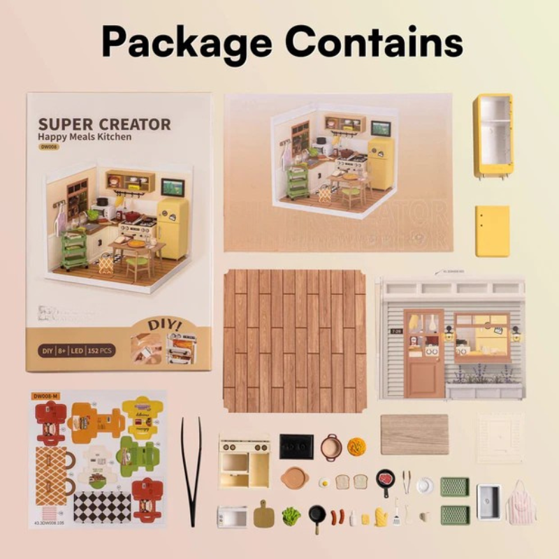 The DIY Kitchen Room Kit supports those who enjoy methodical building projects over multiple days. The experience is structured, but offers creative room within the scene.