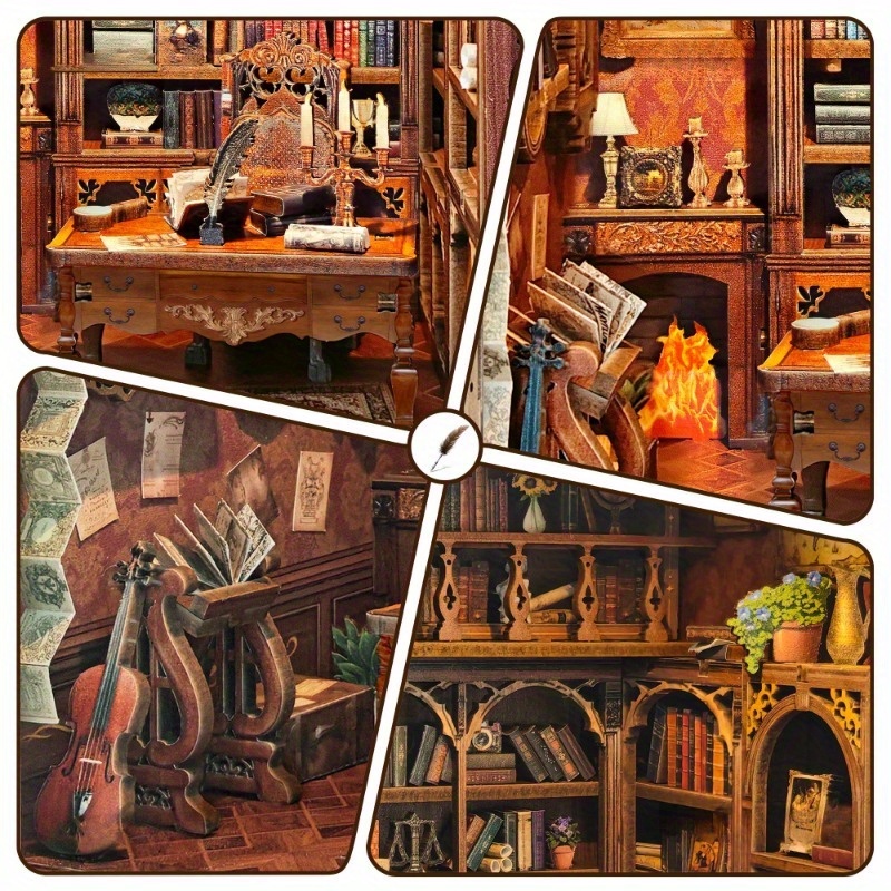 This detailed miniature scene captures the atmosphere of a traditional bookstore with carefully designed shelves, decorative furniture, and classic architectural details. The wooden construction provides durability while maintaining a timeless aesthetic style suitable for decorative display. Assembling the model offers a enjoyable activity where each component contributes to the creation of a complete miniature environment. The lighting element enhances depth and visual warmth, making the display appear vibrant and inviting when placed on shelves or desks. After completion, the model becomes a decorative centerpiece that enhances bookshelf arrangements and creative interior décor. The intricate miniature design creates a sense of depth and storytelling, transforming ordinary shelves into visually captivating spaces.