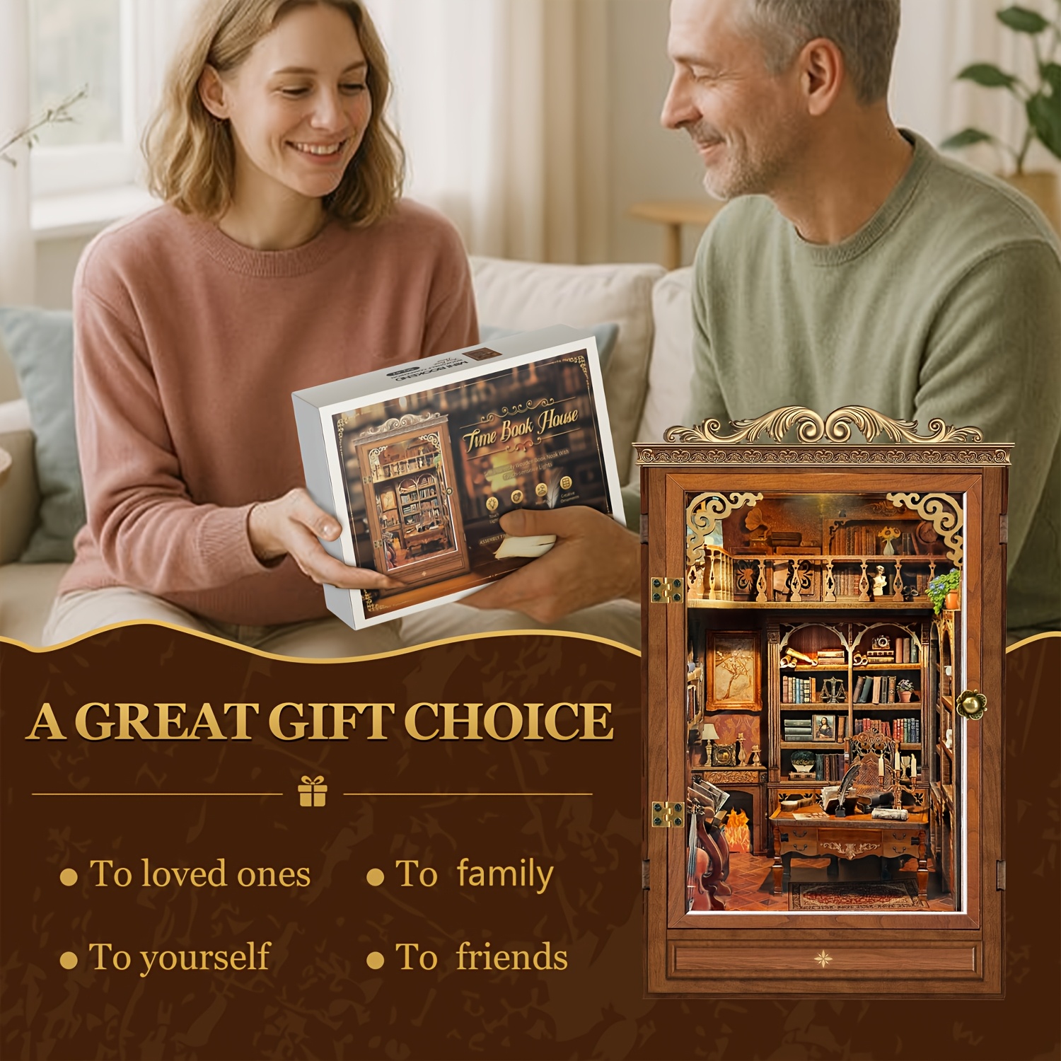 The DIY Timeless Bookstore Themed Miniature Book Nook Kit combines creativity, craftsmanship, and decorative beauty into a captivating miniature display. Once assembled, it becomes a charming bookshelf accent that adds depth, warmth, and artistic character to shelves and creative spaces.