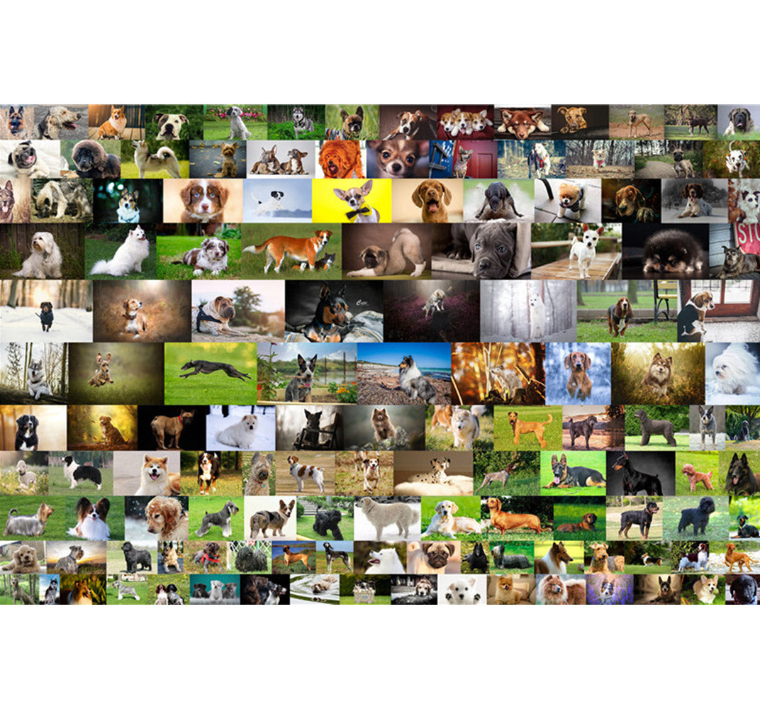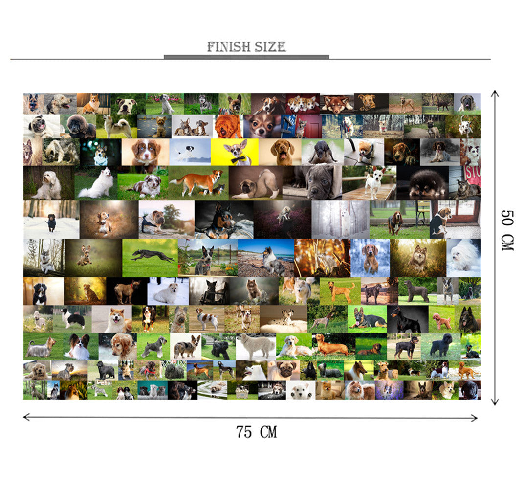 Dog Breeds is a 1000 piece wooden jigsaw puzzle designed by artist Francis Deroa.