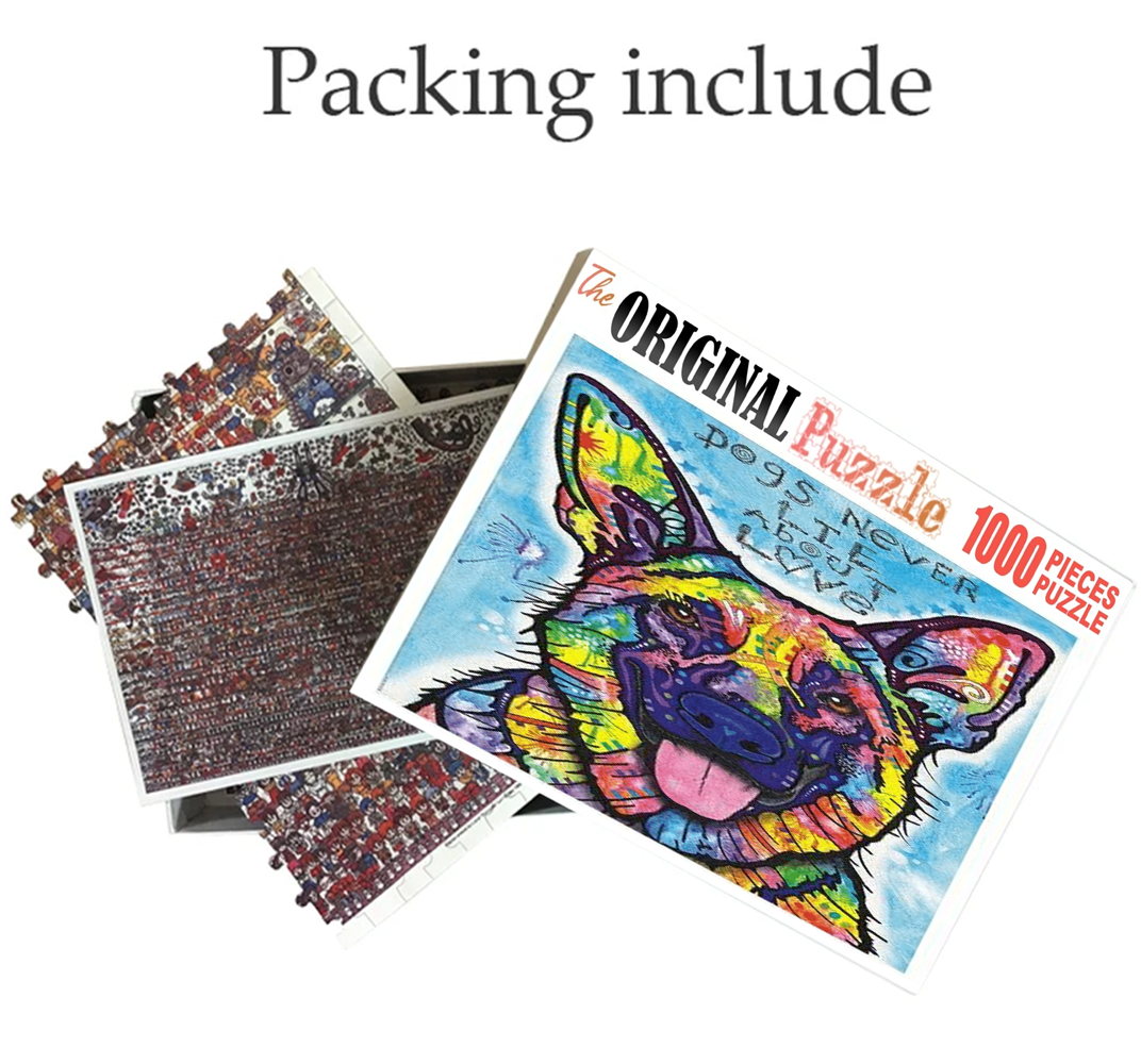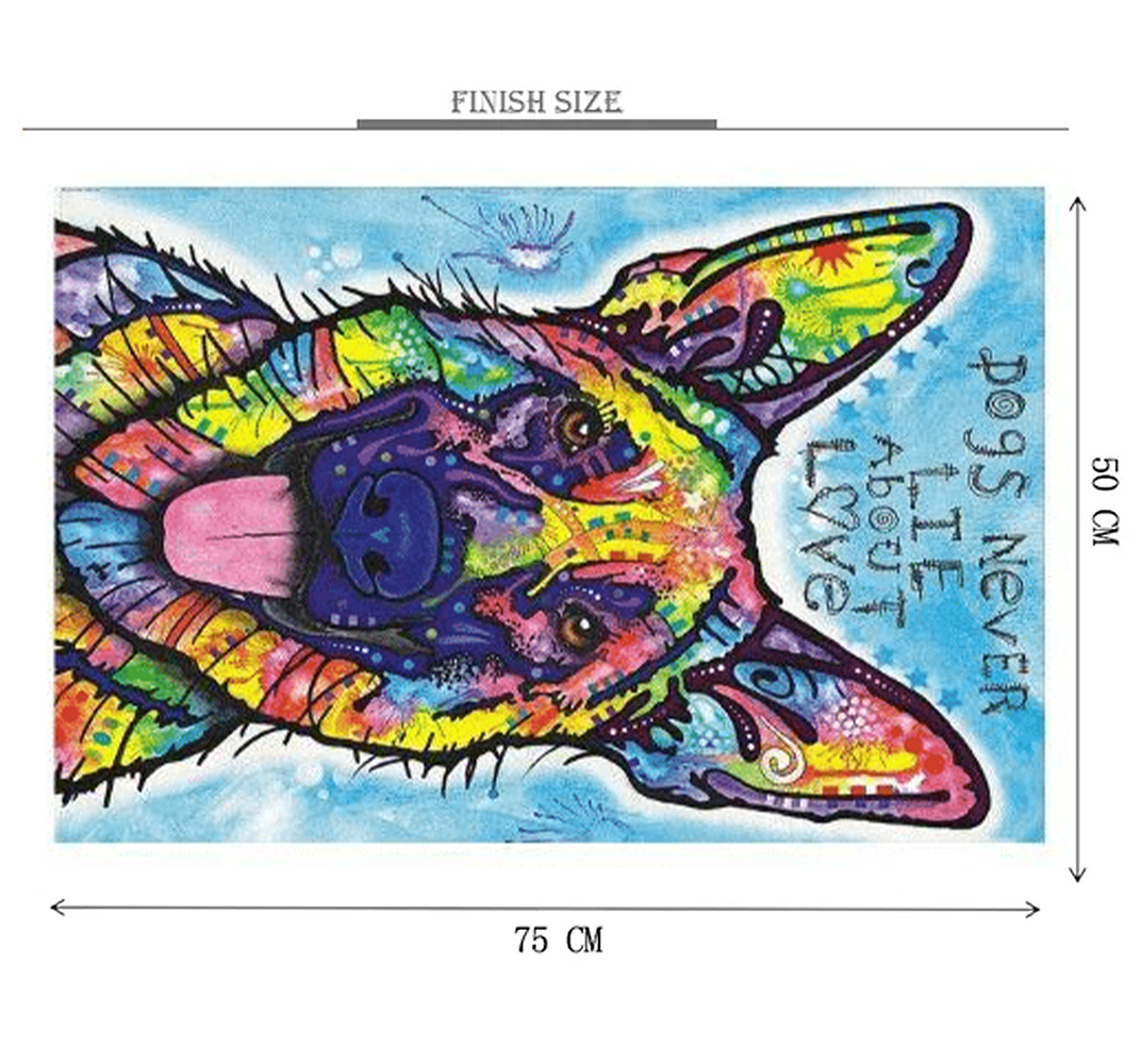 Dog never Lie is a 1000 piece wooden jigsaw puzzle designed by artist Francis Deroa. The painting represents the imaginative idea of a dreamy castle in the clouds. This is a futuristic piece designed for little scientists in your house or older kids with a flair for space and fiction. The 1000-piece jigsaws offer an enjoyable challenge to all puzzle enthusiasts