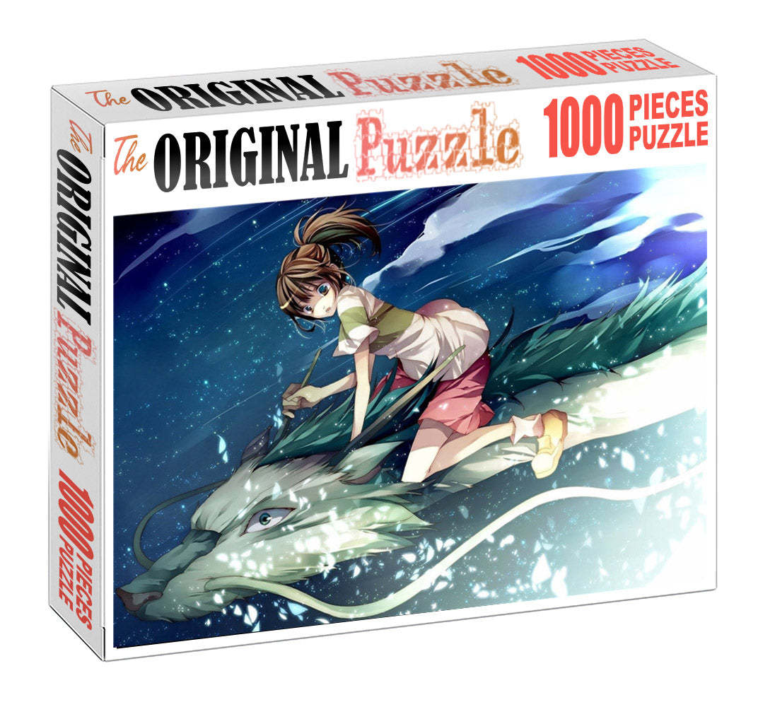 Dragon Ride is a 1000 piece wooden jigsaw puzzle designed by artist Francis Deroa. The painting represents the imaginative idea of a dreamy castle in the clouds. This is a futuristic piece designed for little scientists in your house or older kids with a flair for space and fiction. The 1000-piece jigsaws offer an enjoyable challenge to all puzzle enthusiasts