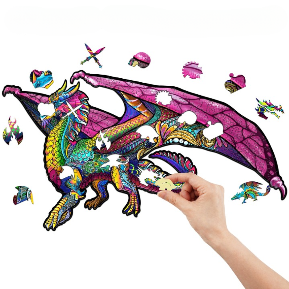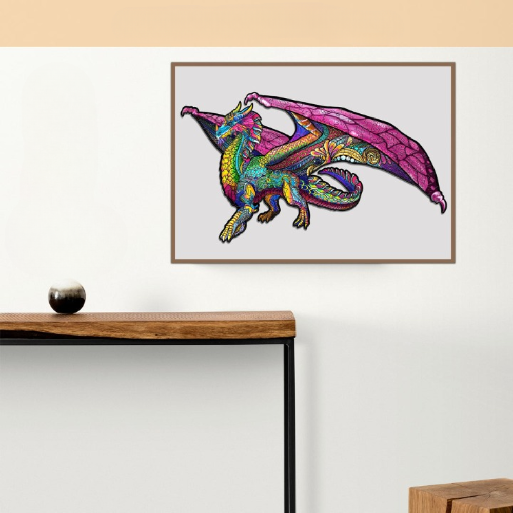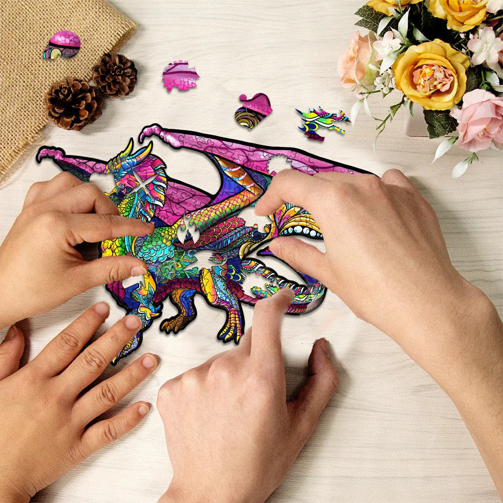 This Dragon Wooden Jigsaw Puzzle is a must-have for enthusiasts of fantasy and folklore. Featuring a majestic dragon, this puzzle challenges you to tame the creature piece by piece. The completed image is a spectacular display of imagination and color, ideal for framing or as a centerpiece in a room where tales of dragons are told and retold.