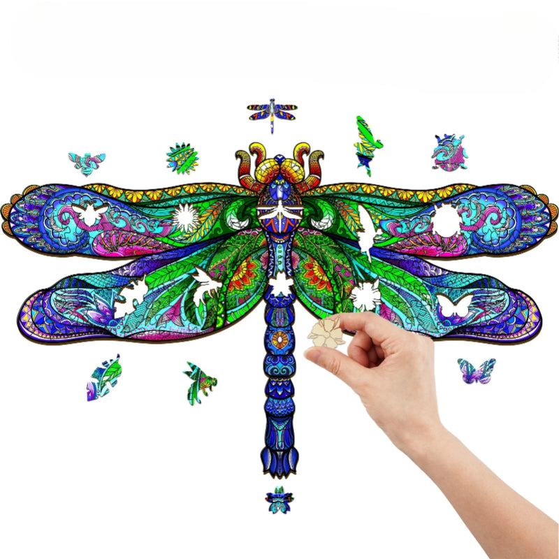 Delve into the intricate beauty of nature with the Dragonfly Wooden Jigsaw Puzzle, a vibrant and artistically challenging piece for those who enjoy the delicate artistry of puzzles.