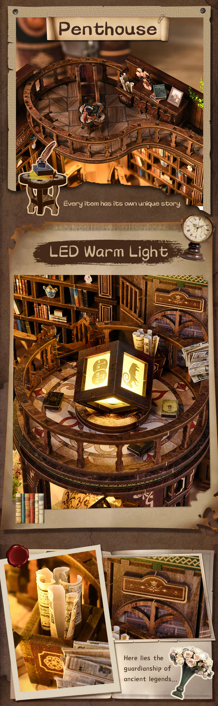 Every piece of the Dreamy Book Hall is intricately crafted, offering a realistic miniature representation of a luxurious book haven. The refined wood textures, detailed carvings, and multi-layered structure create depth and sophistication. Whether you are a miniature enthusiast, collector, or hobbyist, this kit offers a fulfilling and artistic experience.