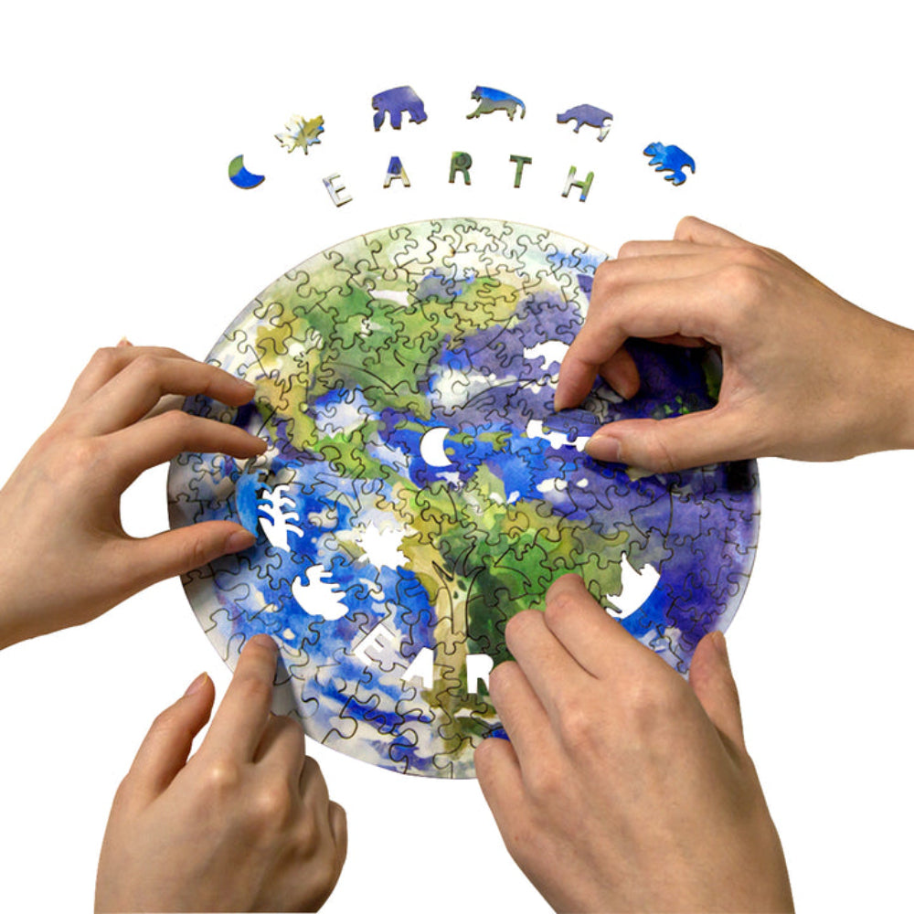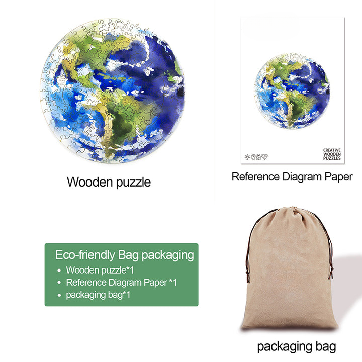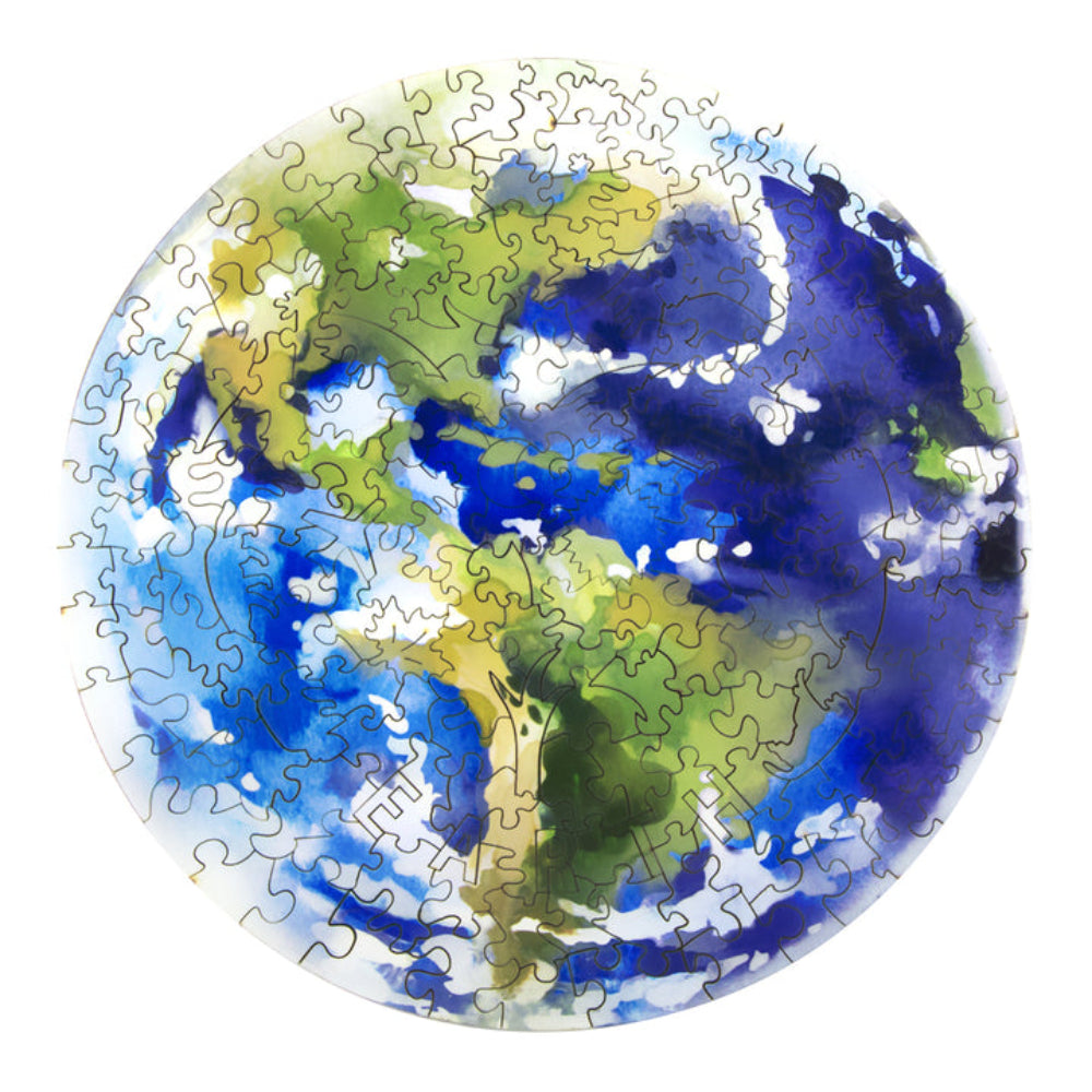 Design: The puzzle presents a watercolor representation of Earth, offering a unique artistic take on our world.