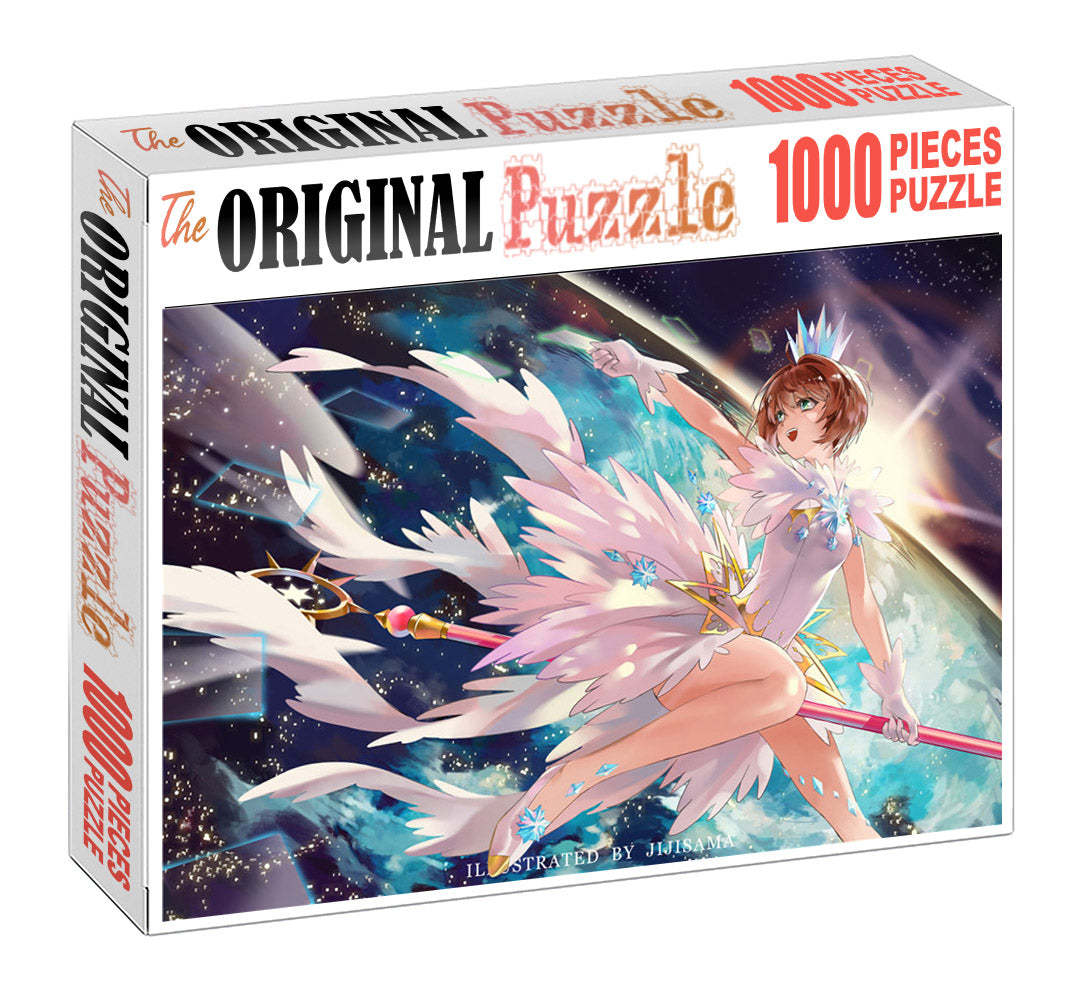 Fairy of White Magic is a 1000 piece wooden jigsaw puzzle designed by artist Francis Deroa. The painting represents the imaginative idea of a dreamy castle in the clouds. This is a futuristic piece designed for little scientists in your house or older kids with a flair for space and fiction. The 1000-piece jigsaws offer an enjoyable challenge to all puzzle enthusiasts
