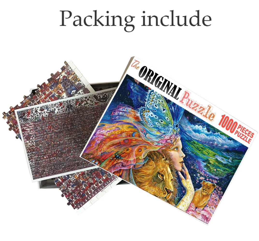 Fairy Queen is a 1000 piece wooden jigsaw puzzle designed by artist Francis Deroa. The painting represents the imaginative idea of a dreamy castle in the clouds. This is a futuristic piece designed for little scientists in your house or older kids with a flair for space and fiction. The 1000-piece jigsaws offer an enjoyable challenge to all puzzle enthusiasts