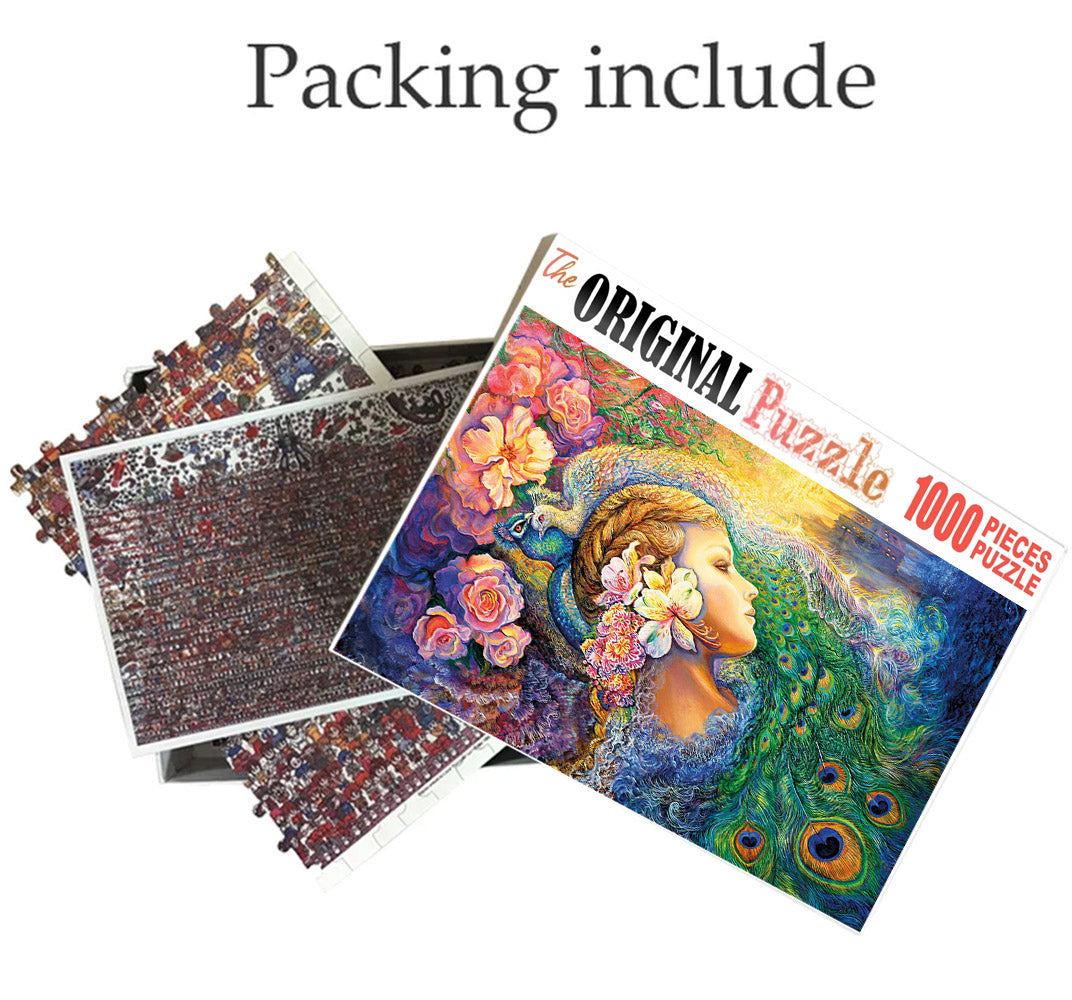 Fauna Painting is a 1000 piece wooden jigsaw puzzle designed by artist Francis Deroa. The painting represents the imaginative idea of a dreamy castle in the clouds. This is a futuristic piece designed for little scientists in your house or older kids with a flair for space and fiction. The 1000-piece jigsaws offer an enjoyable challenge to all puzzle enthusiasts