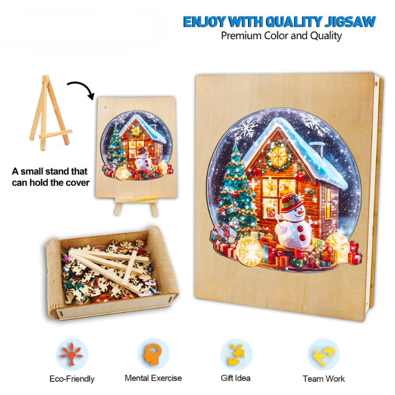 Celebrate the warmth and joy of the holiday season with the Enchanted Winter Haven Wooden Jigsaw Puzzle. This beautifully designed puzzle captures the essence of a magical Christmas with every piece. Gather your liked ones and immerse yourselves in the spirit of the season with the Enchanted Winter Haven Wooden Jigsaw Puzzle. It's not just a puzzle; it's a portal to holiday memories waiting to be pieced together, one joyful moment at a time.