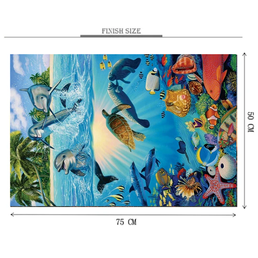 Fun Under The Water is a 1000 piece wooden jigsaw puzzle designed by artist Hashim Hays. You'll enjoy building this amazing puzzle while admiring the charm of aquatic life. The 1000-piece jigsaws offer an enjoyable challenge to all puzzle enthusiasts.