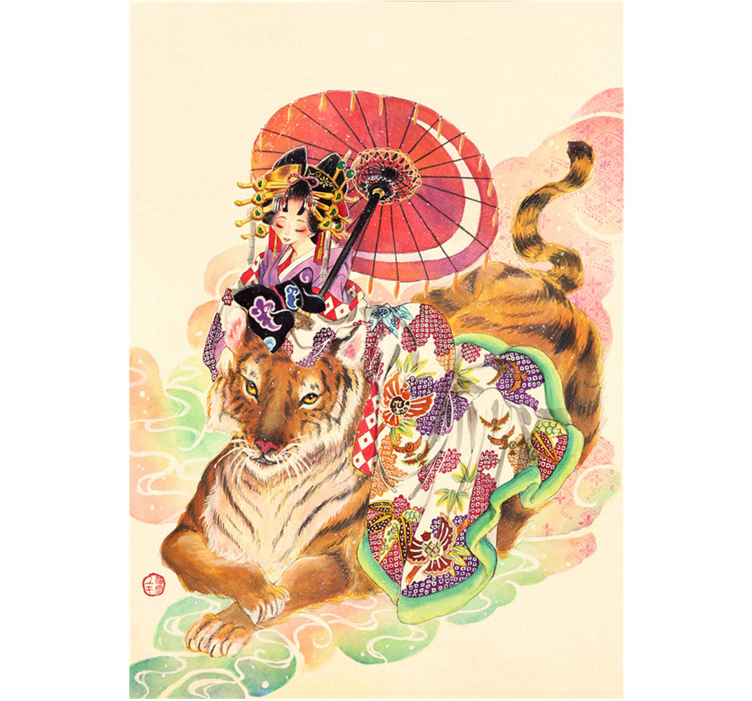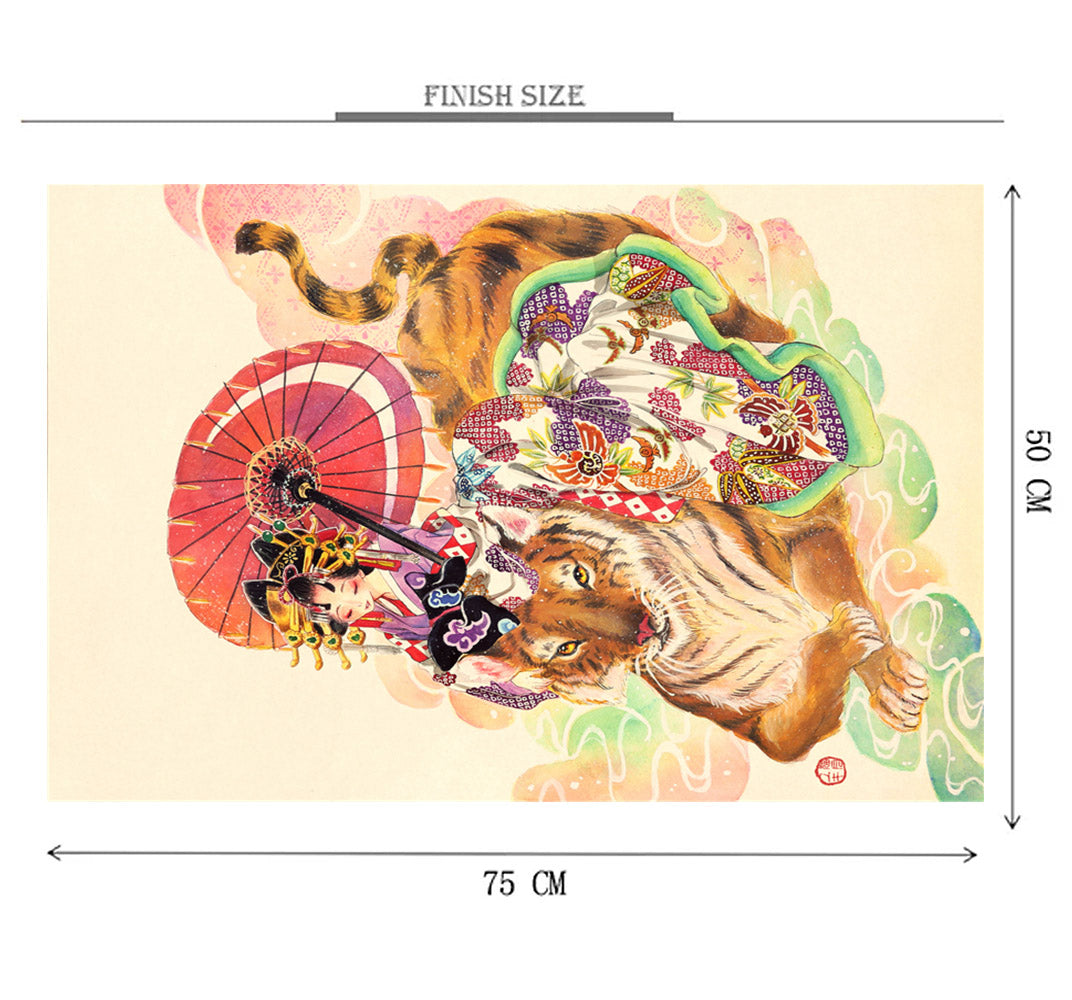 Goddess of Tiger 1000 piece wooden jigsaw puzzle is an illustration of beautiful goddess with her tiger.